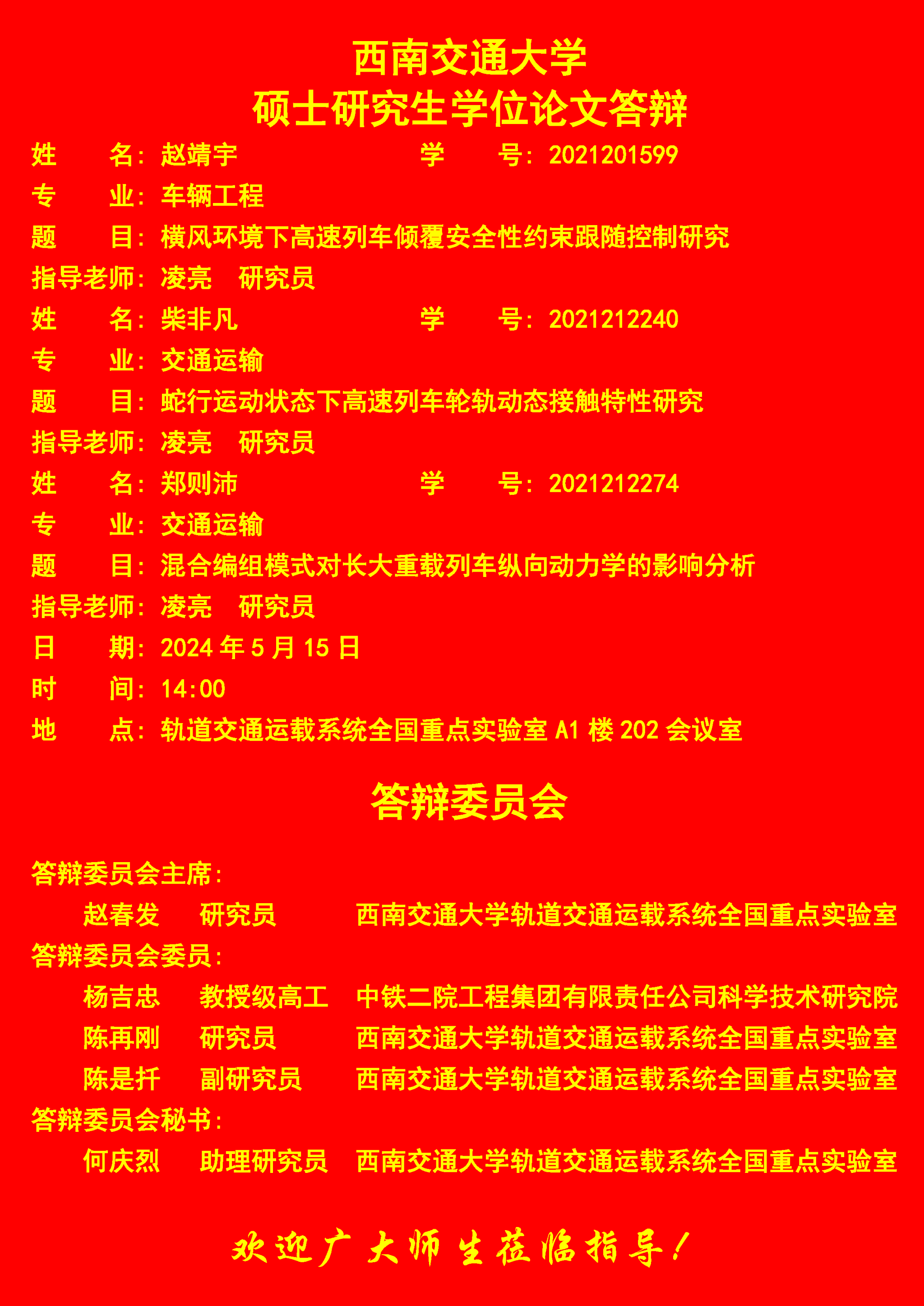 西南交通大学赵靖宇、柴非凡、 郑则沛硕士学位论文答辩