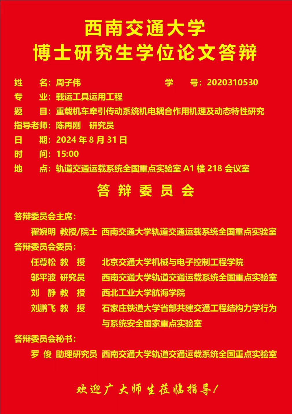 西南交通大学周子伟博士学位论文答辩