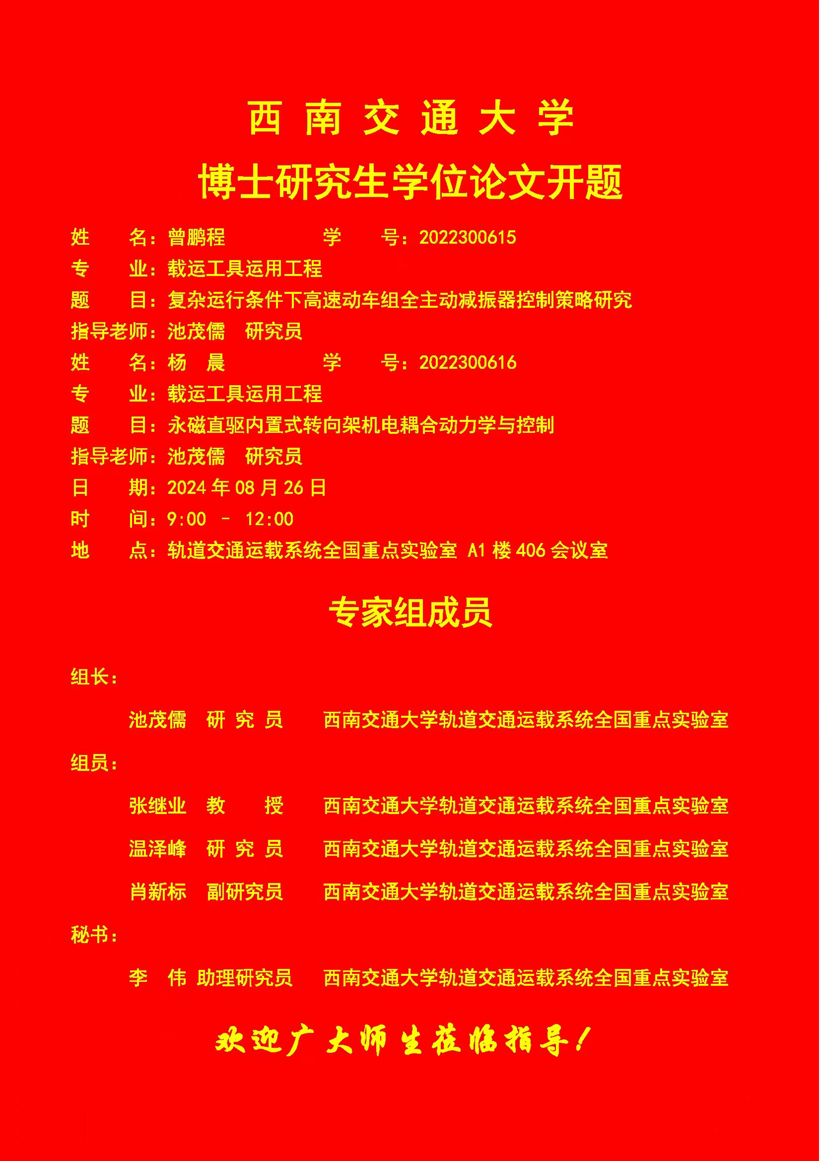 西南交通大学曾鹏程博士、杨晨博士学位论文开题报告