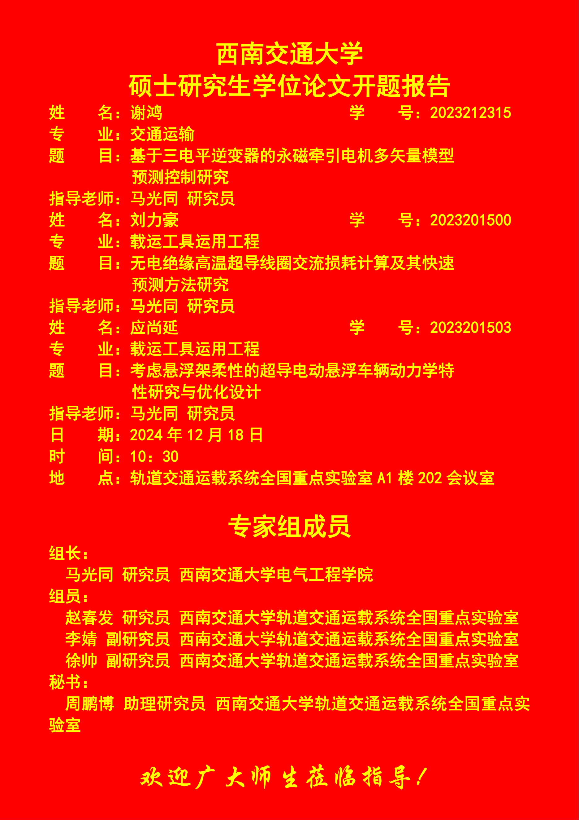 西南交通大学谢鸿、刘力豪、应尚延硕士研究生开题报告