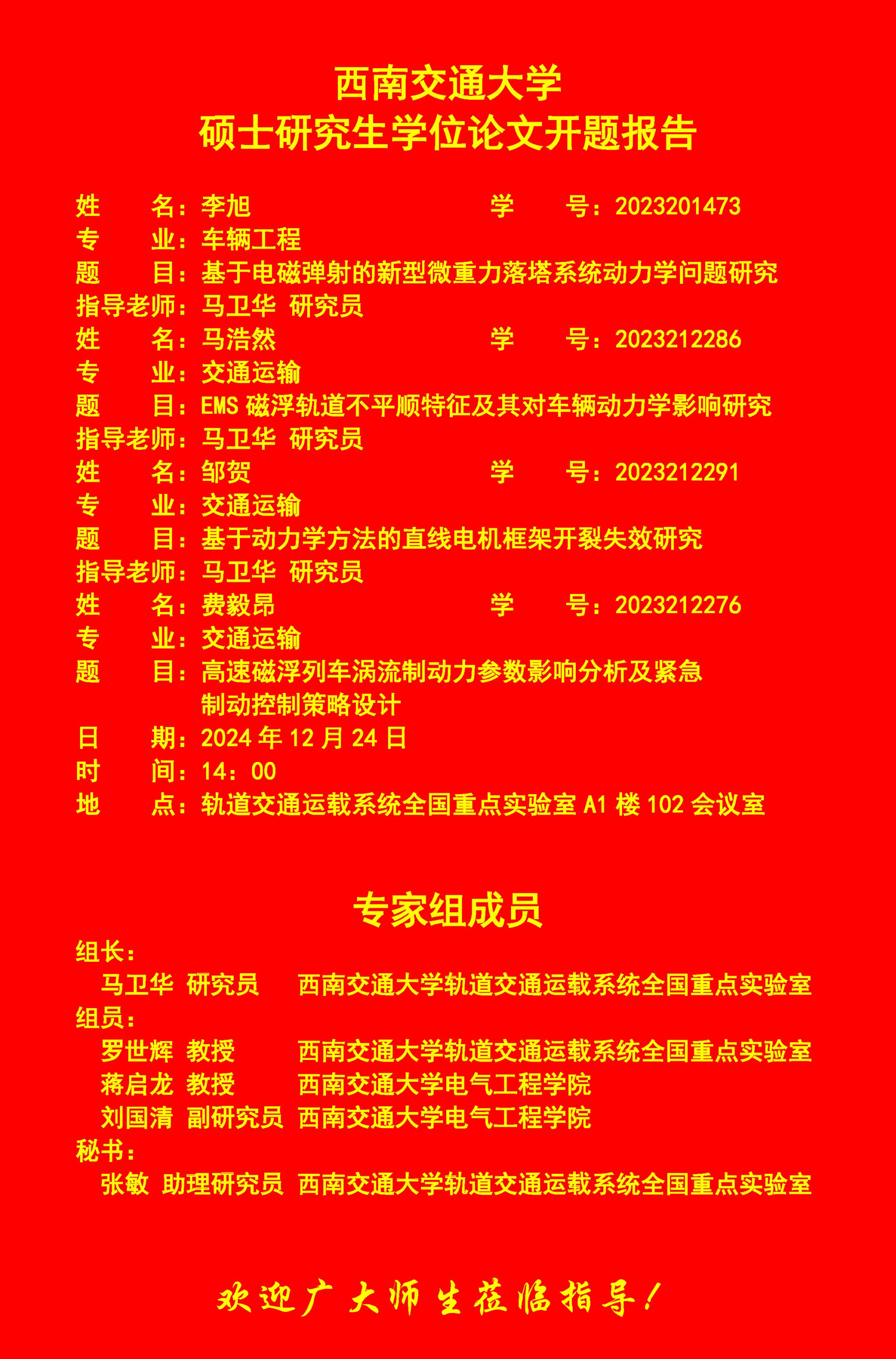 西南交通大学李旭、马浩然、邹贺、费毅昂硕士研究生开题报告