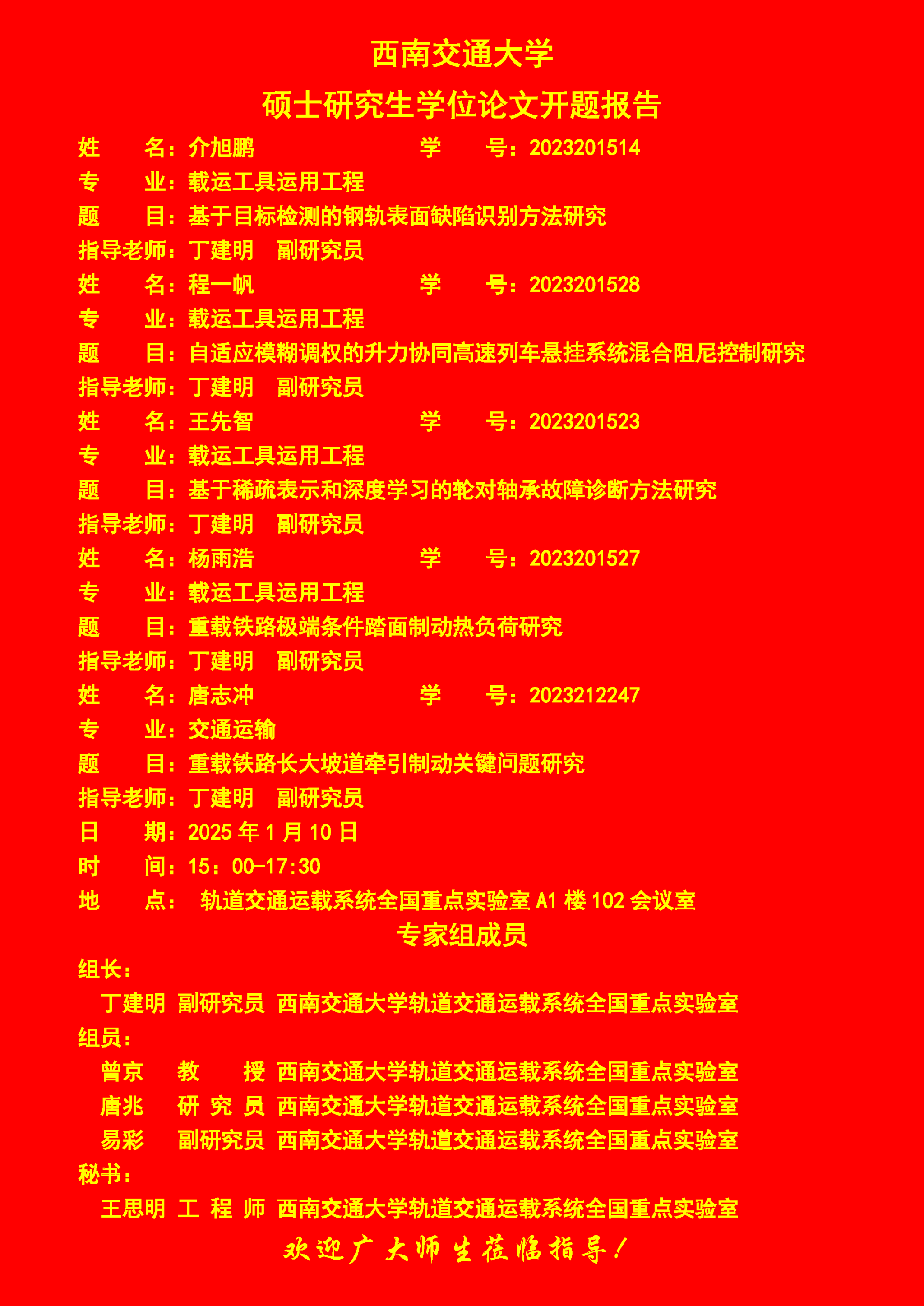 西南交通大学介旭鹏、程一帆、王先智 杨雨浩、唐志冲开题报告