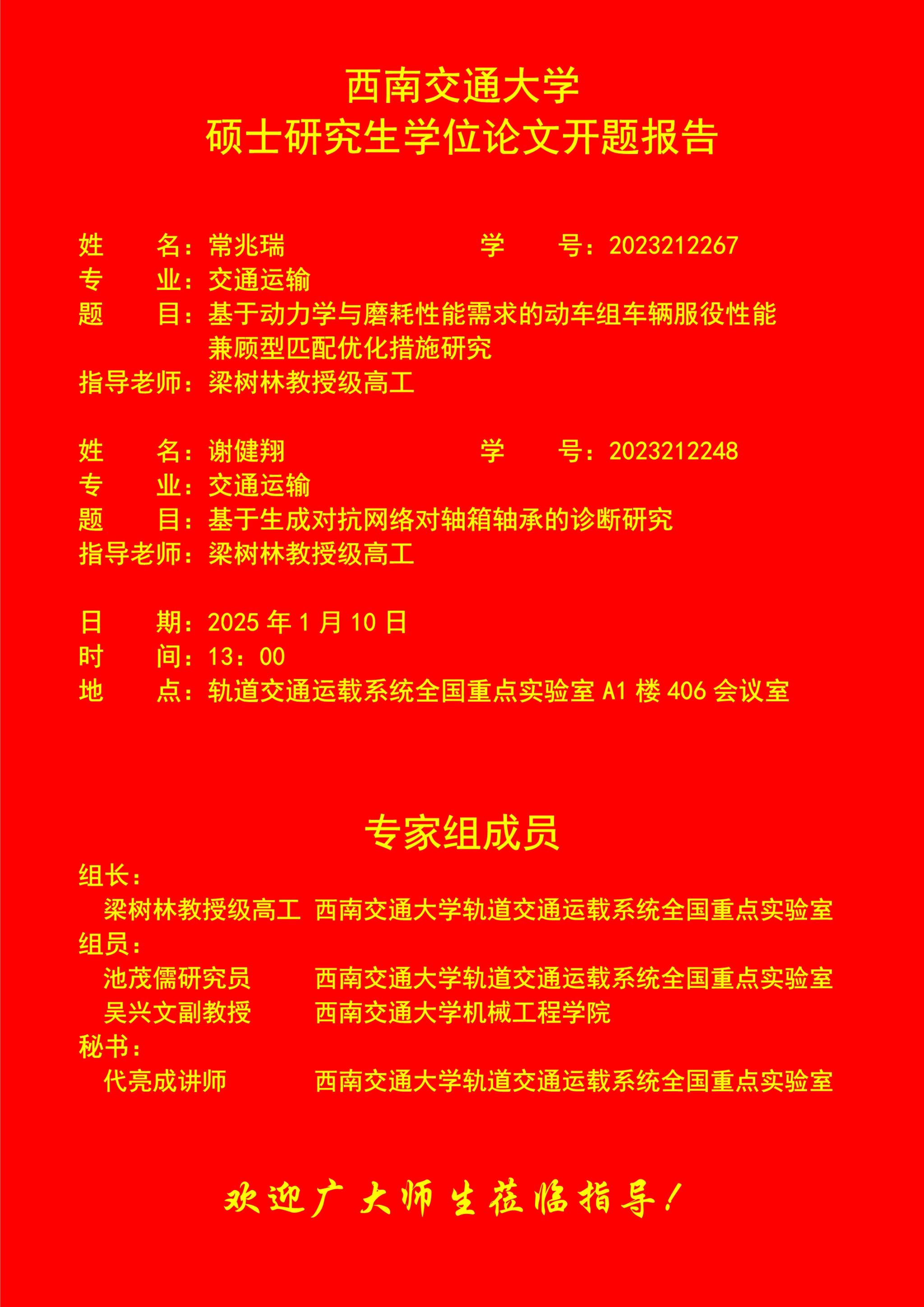 西南交通大学常兆瑞、谢健翔硕士研究生开题报告
