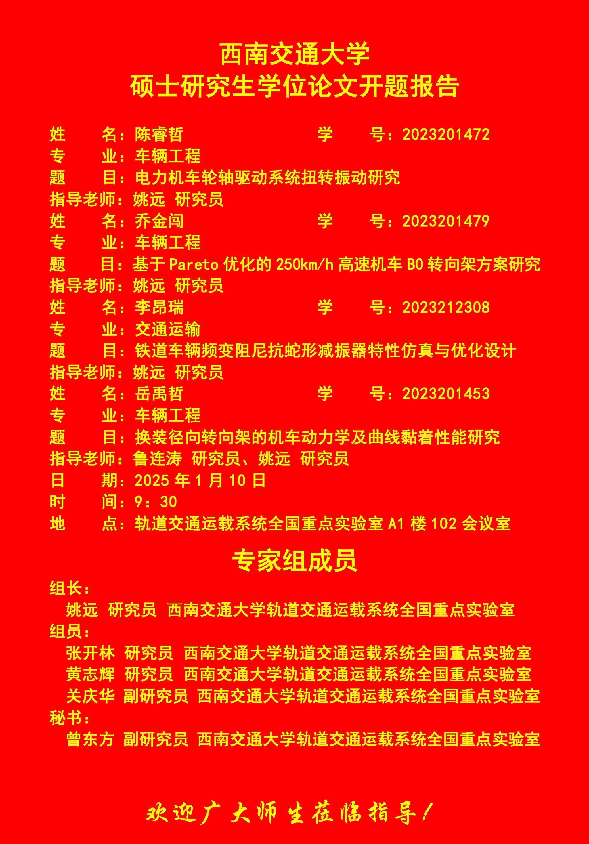 西南交通大学陈睿哲、乔金闯、李昂瑞、岳禹哲研究生开题报告