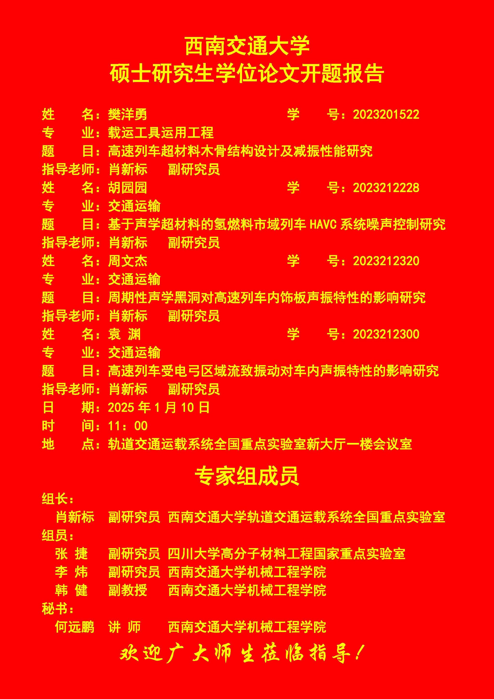 西南交通大学樊洋勇、胡园园、周文杰、袁渊硕士研究生开题报告