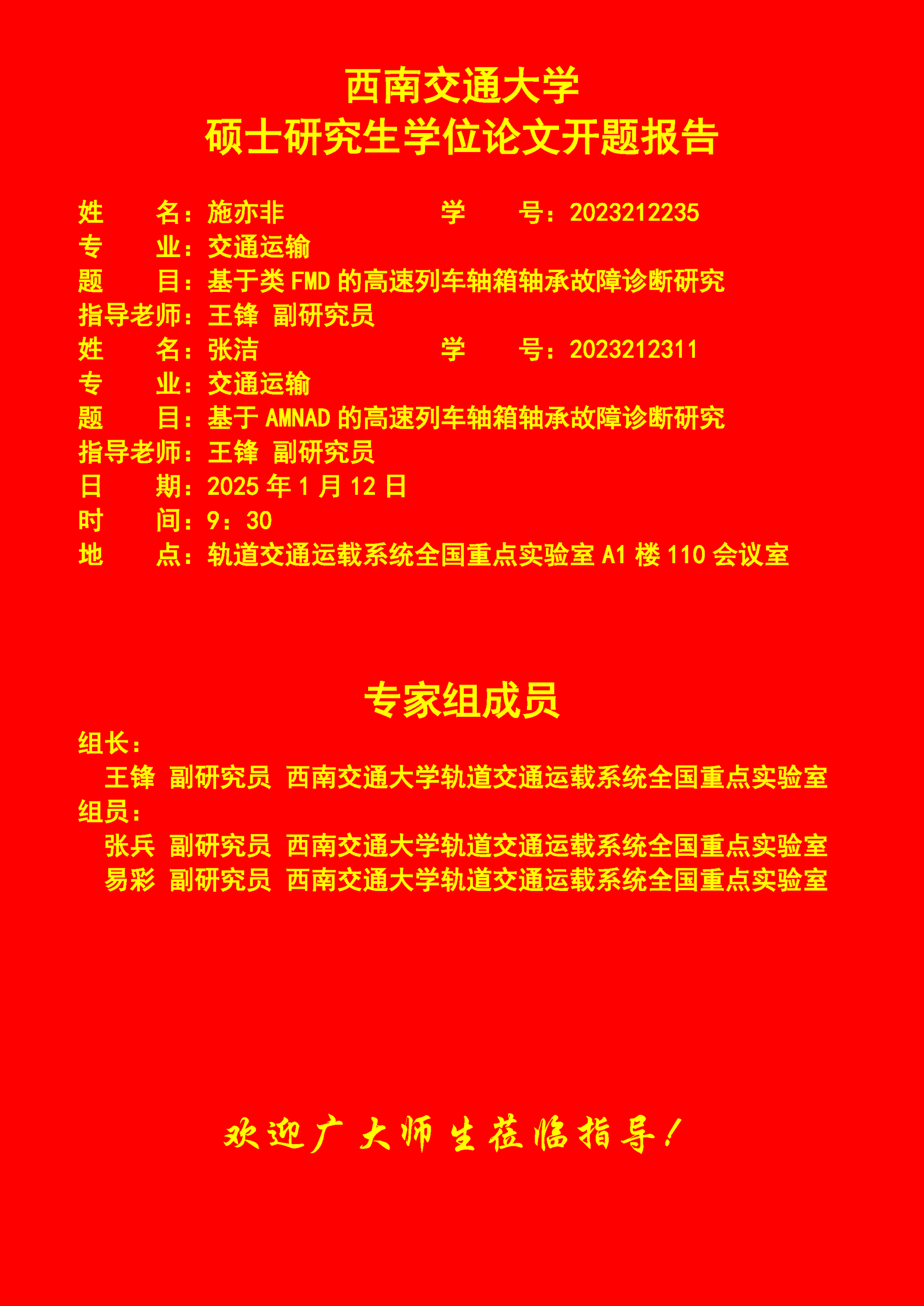 西南交通大学施亦非、张洁硕士研究生开题报告