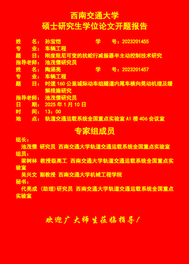西南交通大学孙宝恺、陶涵亮硕士研究生开题报告