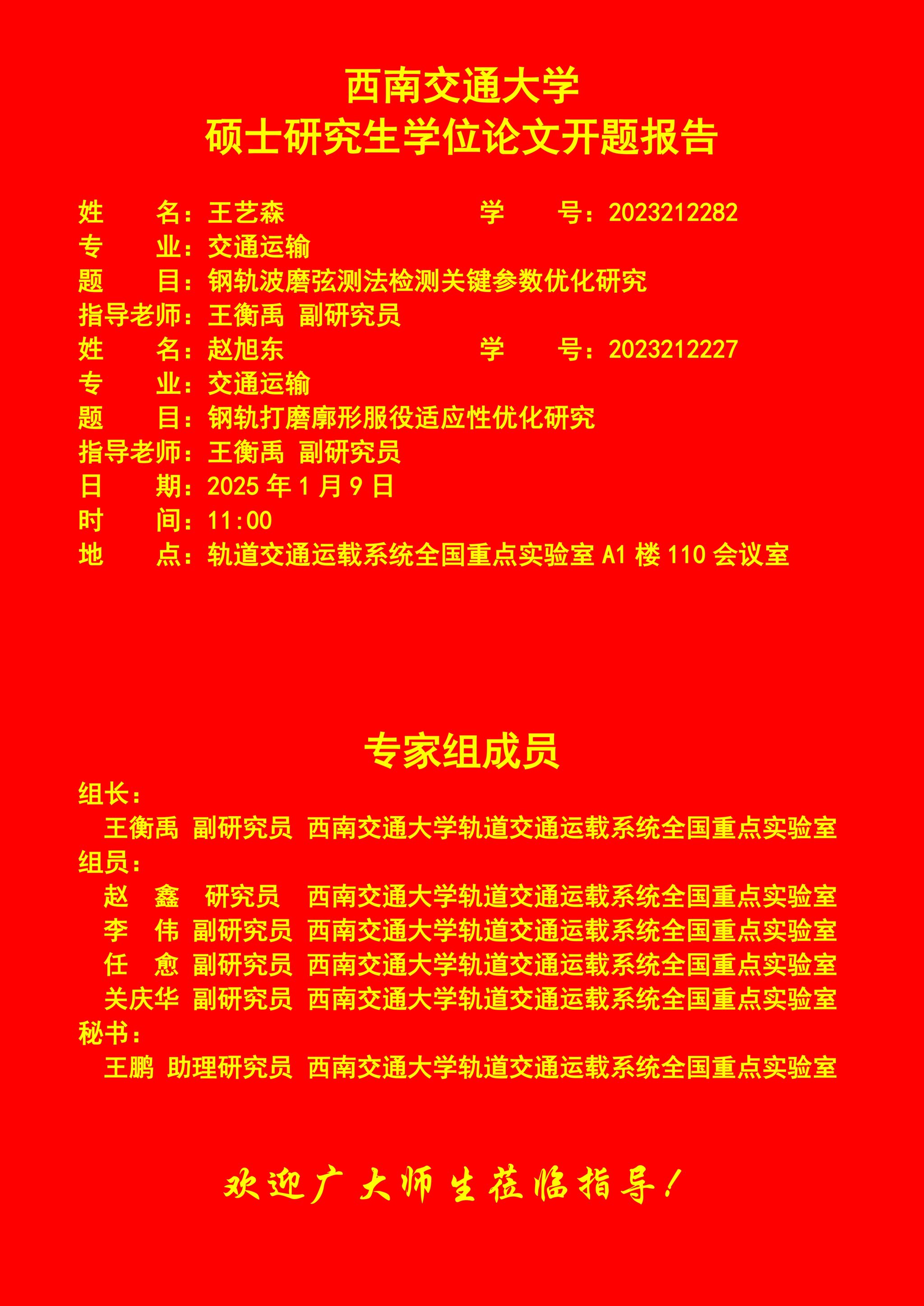 西南交通大学王艺森、赵旭东硕士研究生开题报告