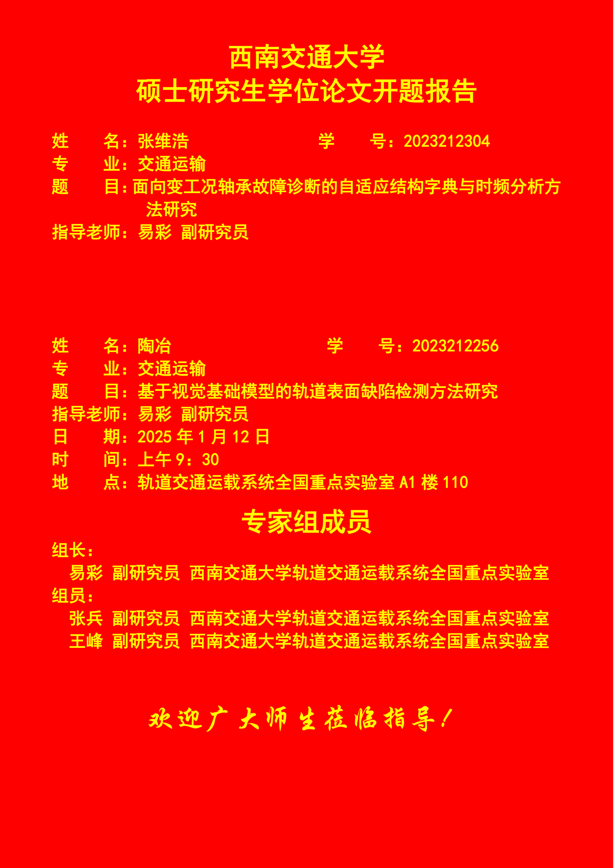 西南交通大学张维浩、陶冶硕士研究生开题报告