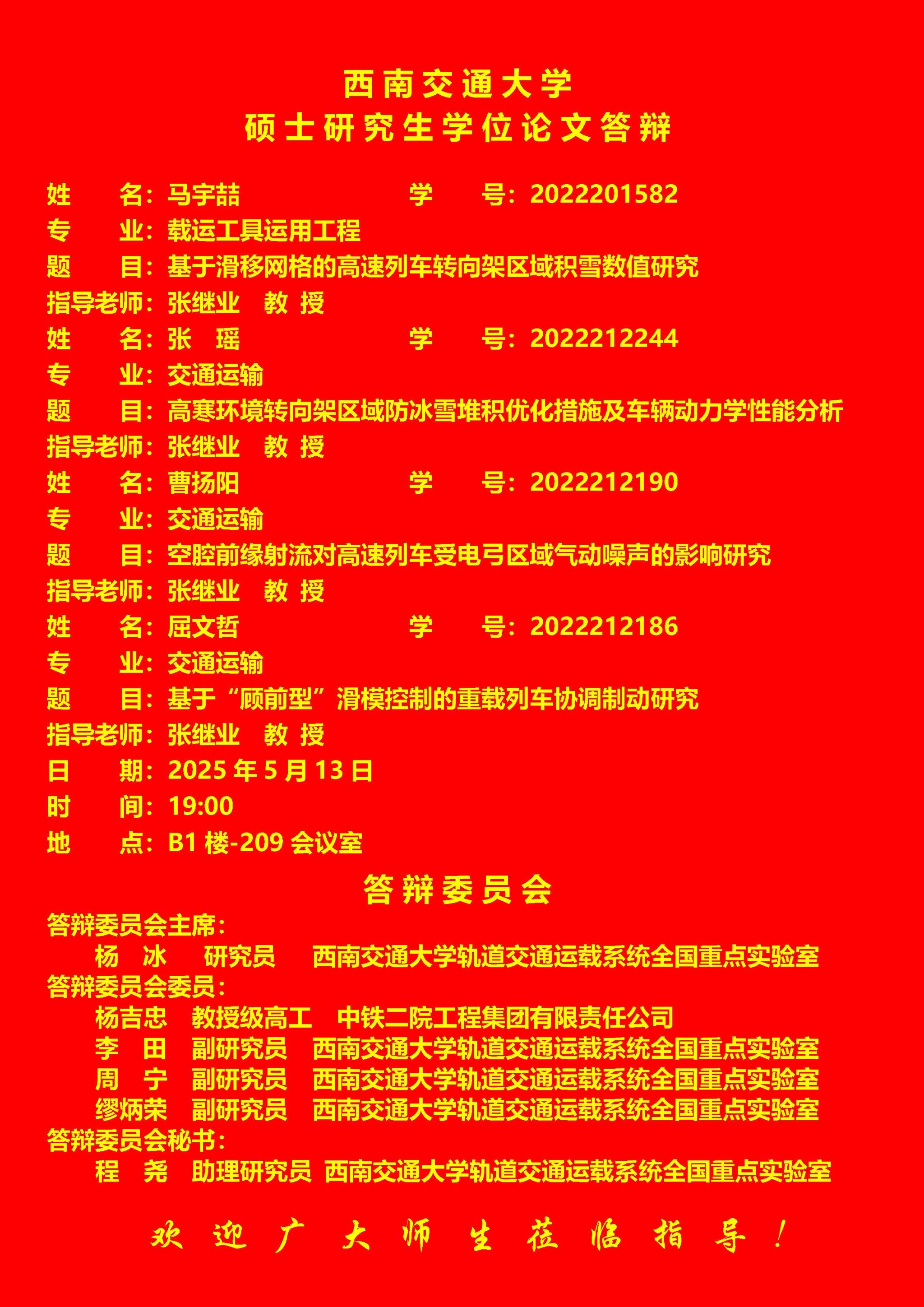 西南交通大学马宇喆、张瑶、曹扬阳、屈文哲硕士学位论文答辩