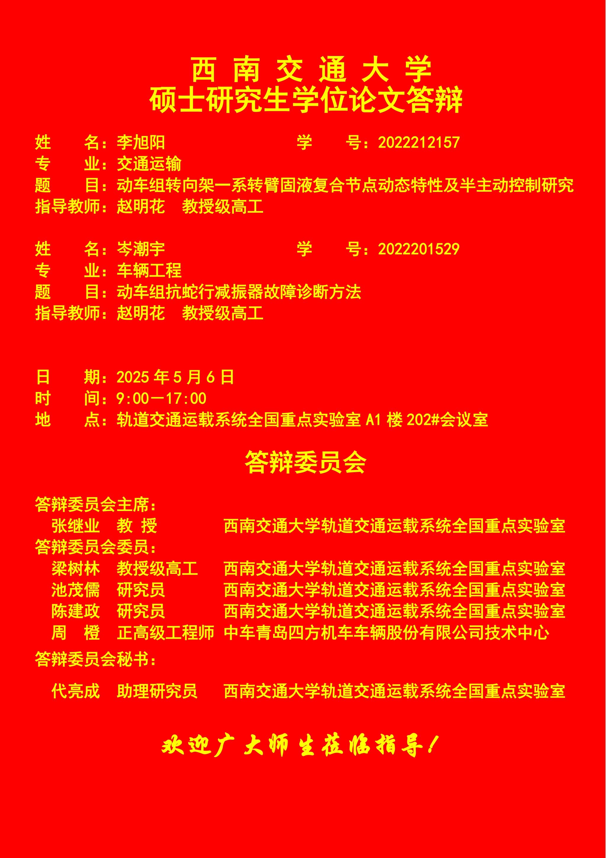 西南交通大学李旭阳、岑潮宇硕士学位论文答辩