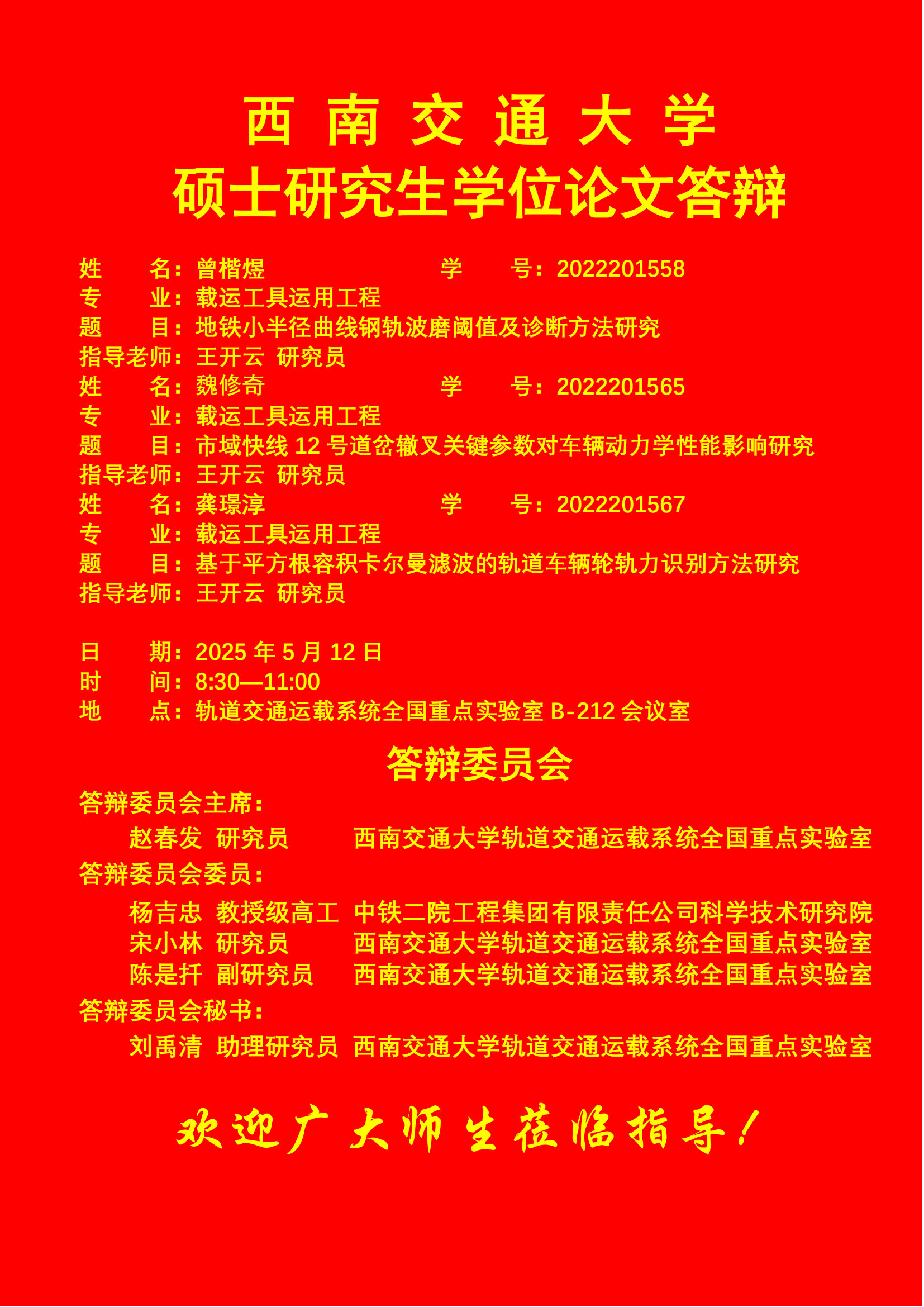 西南交通大学曾楷煜、魏修奇、龚璟淳硕士学位论文答辩