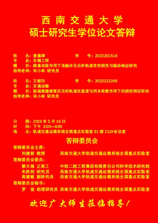 西南交通大学曾嘉琛、王献印硕士学位论文答辩