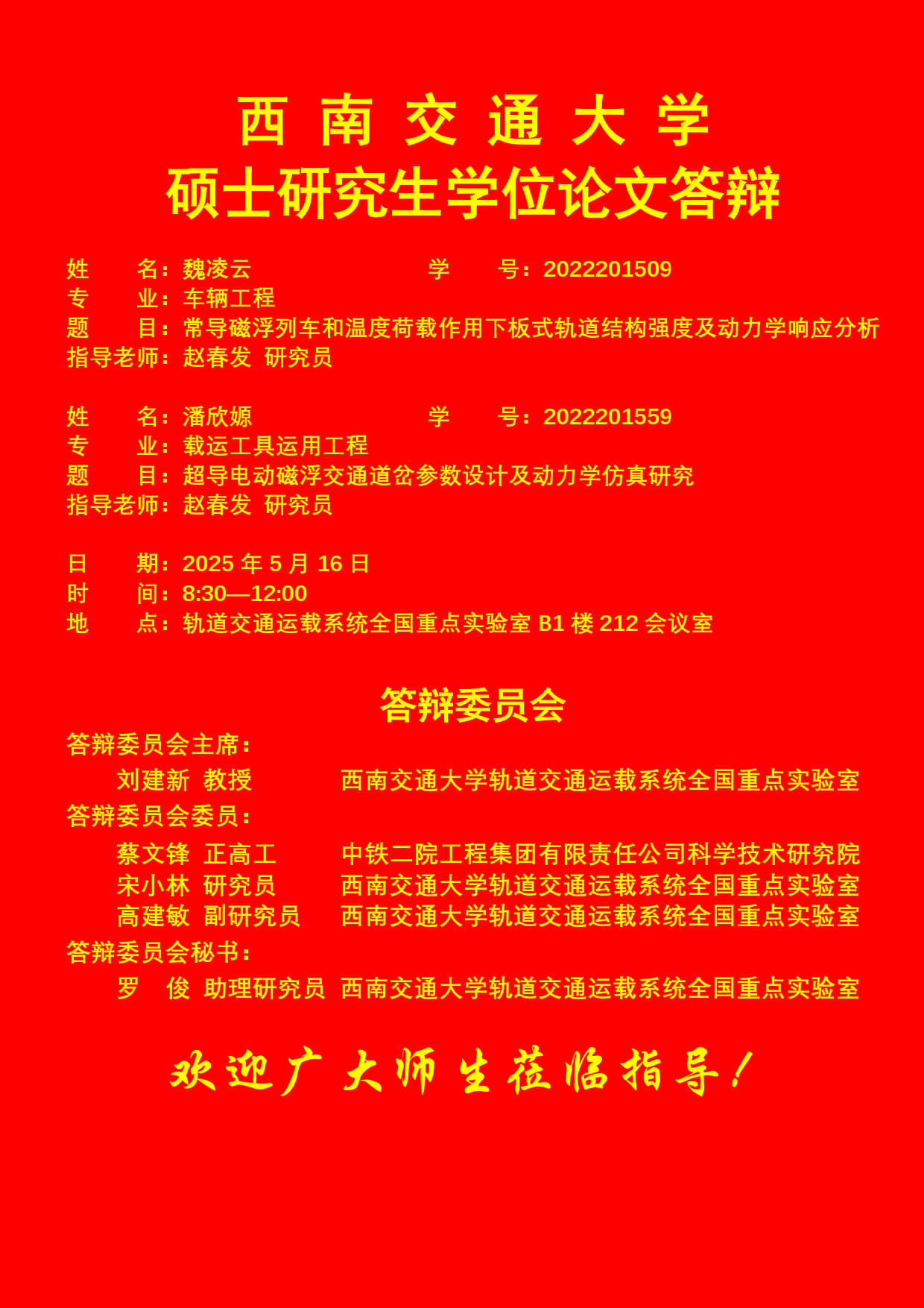 西南交通大学魏凌云、潘欣嫄硕士学位论文答辩