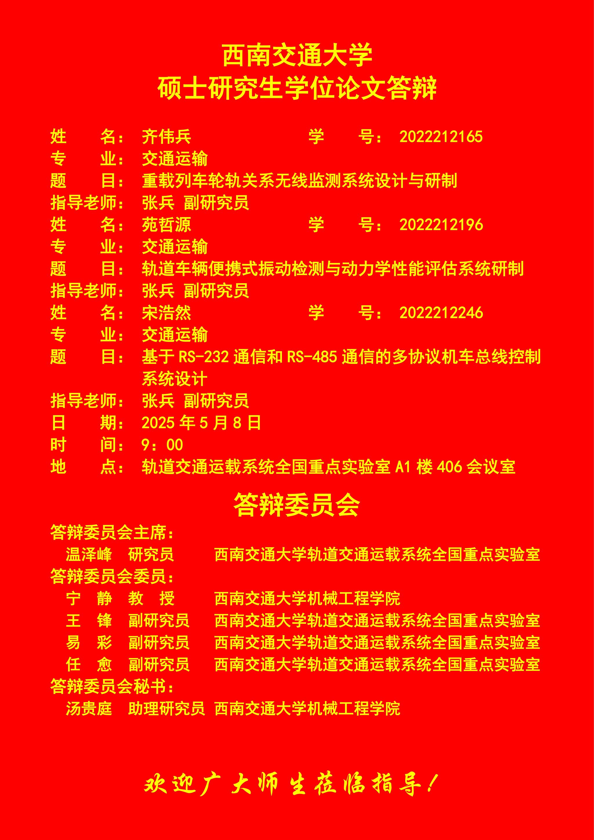 西南交通大学齐伟兵、苑哲源、宋浩然硕士学位论文答辩