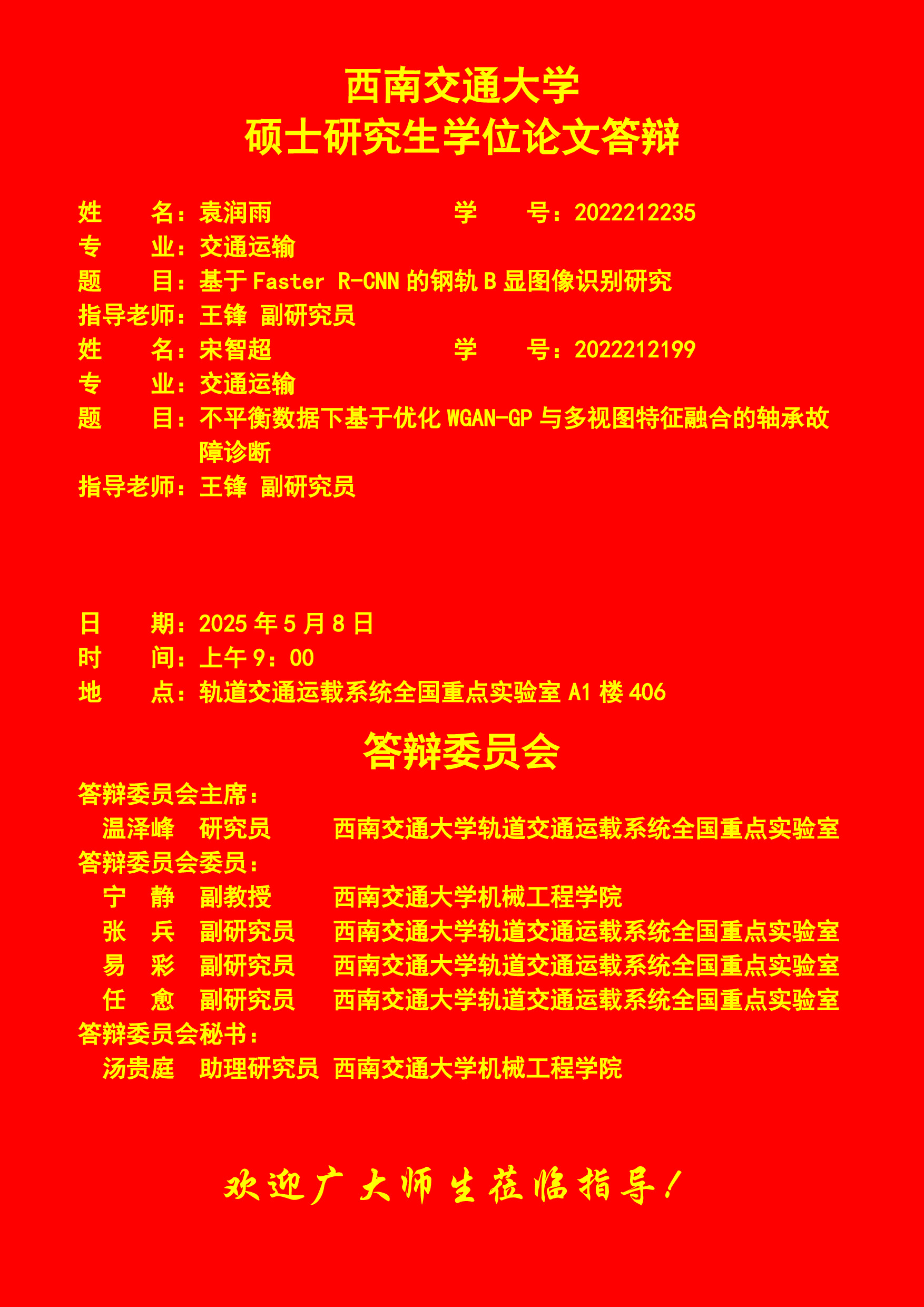 西南交通大学袁润雨、宋智超硕士学位论文答辩
