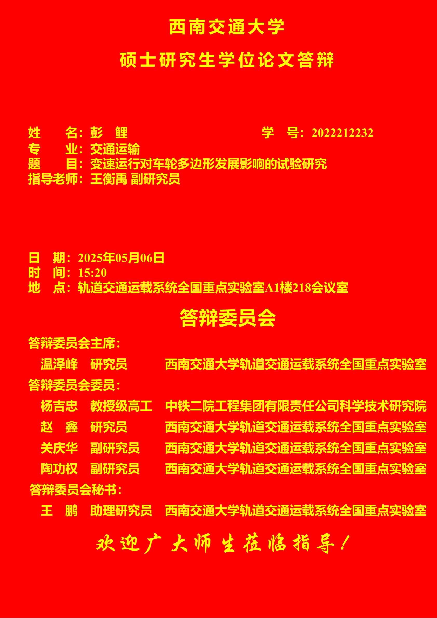 西南交通大学彭鲤硕士研究生学位论文答辩