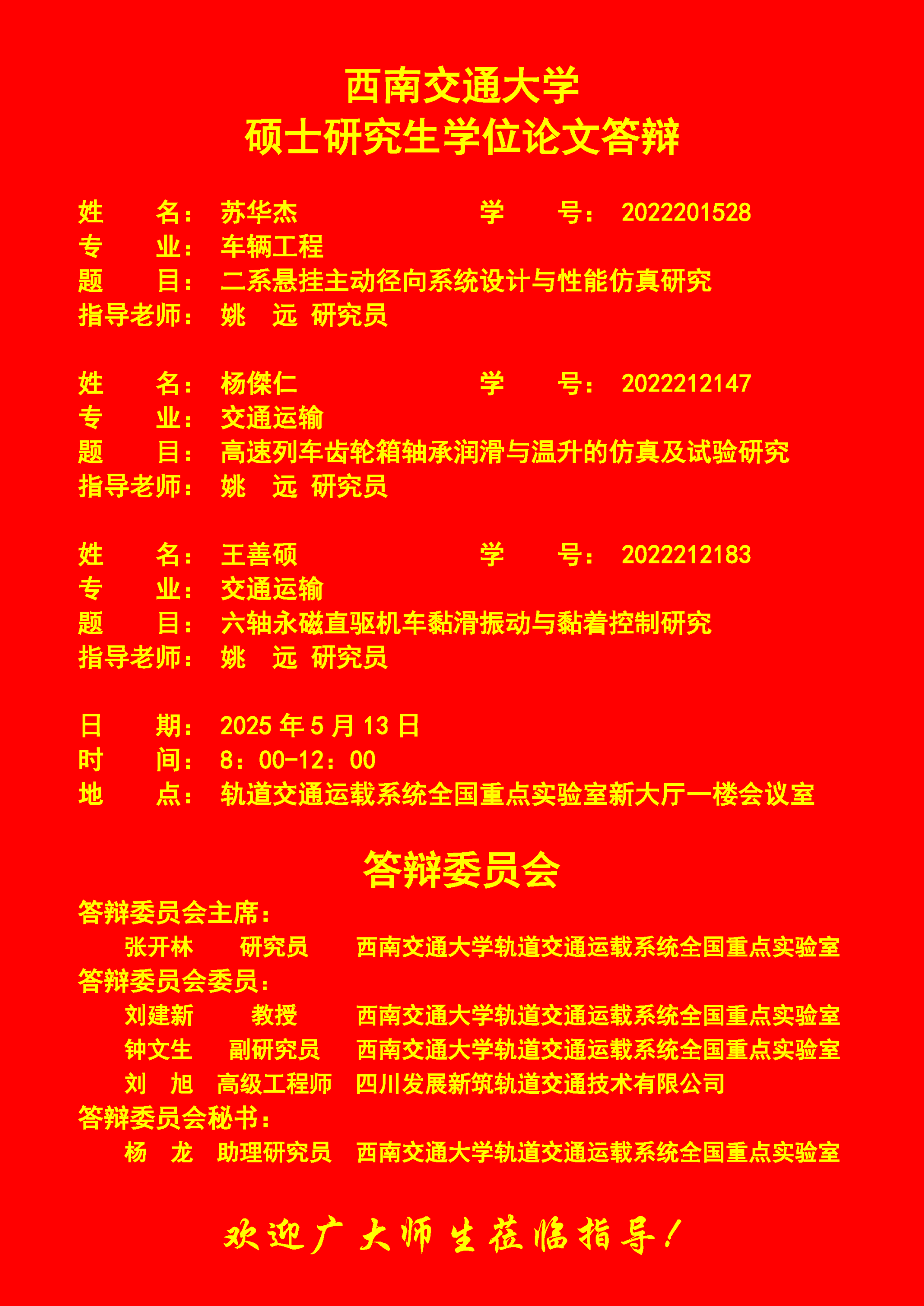 西南交通大学苏华杰、杨傑仁、王善硕硕士学位论文答辩