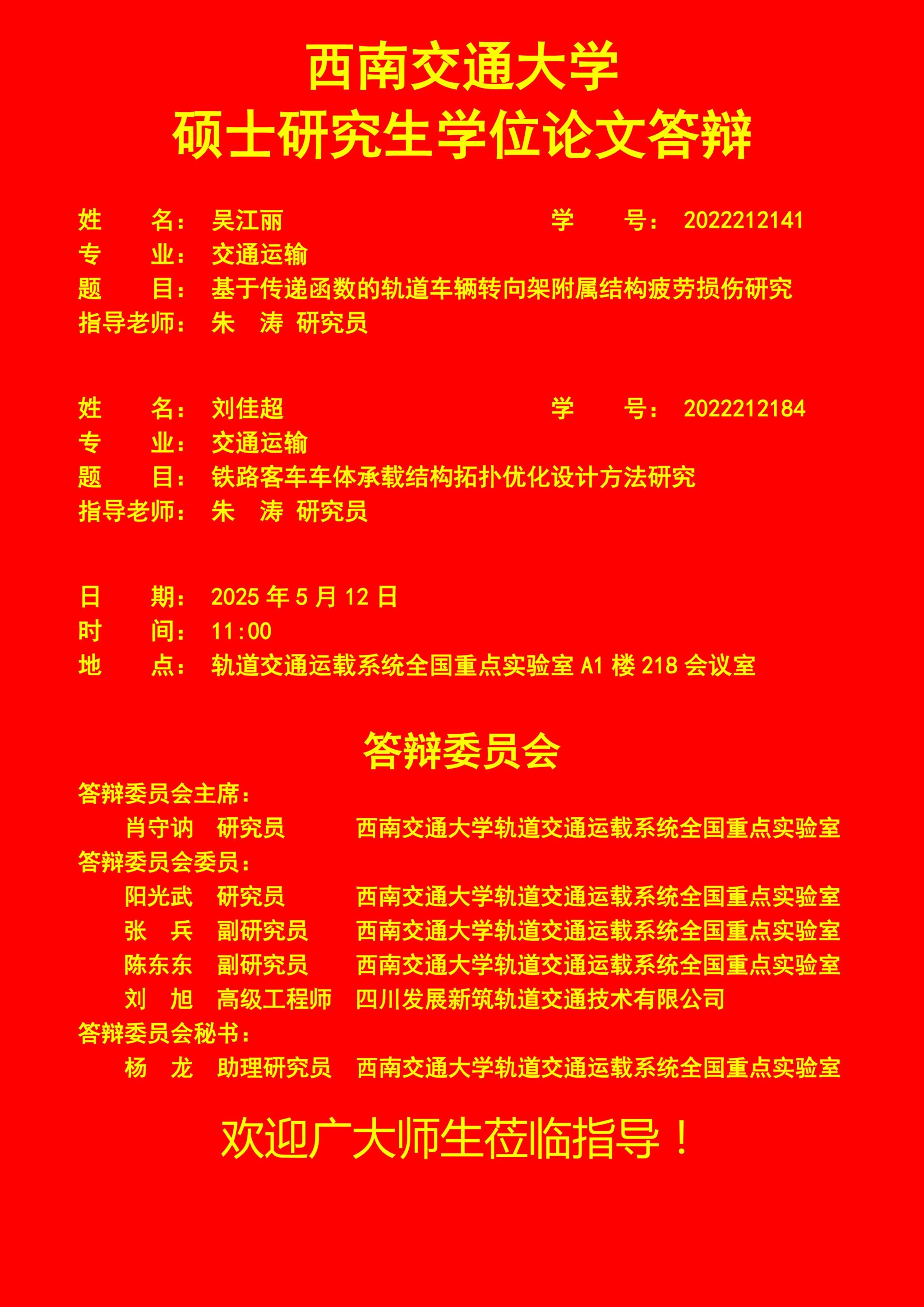 西南交通大学吴江丽、刘佳超硕士学位论文答辩