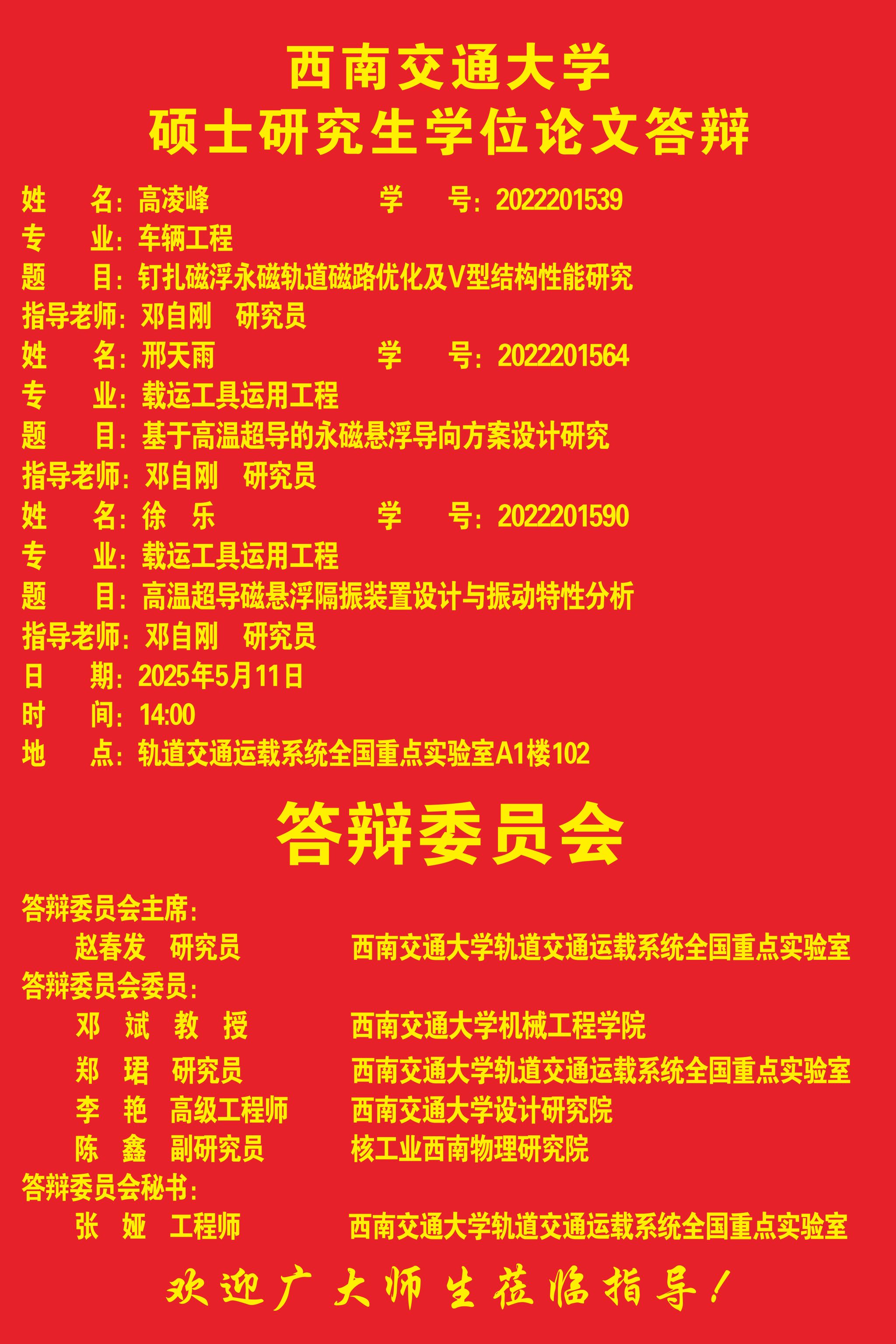 西南交通大学高凌峰、邢天雨、徐乐硕士学位论文答辩