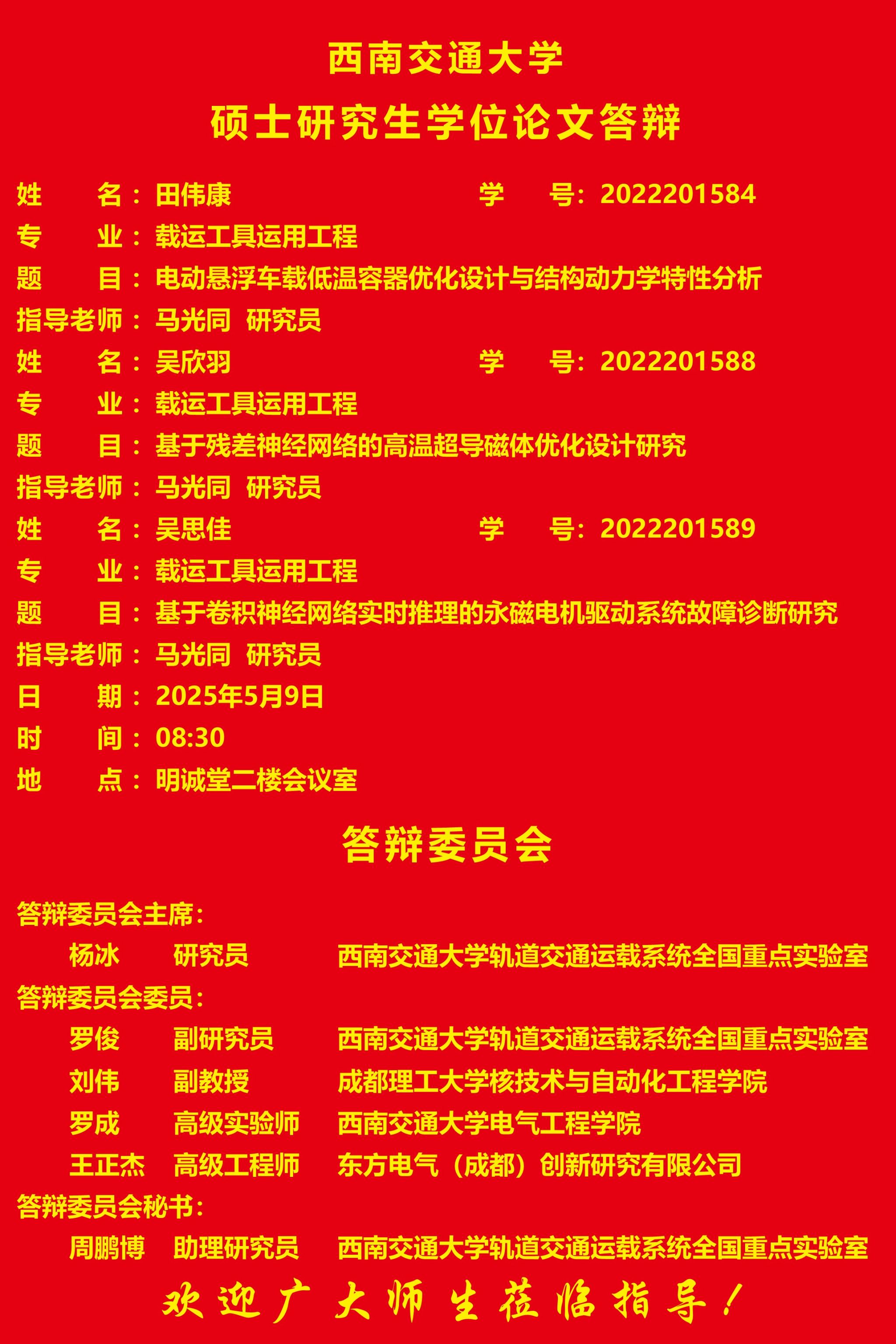 西南交通大学田伟康 、吴欣羽、 吴思佳硕士学位论文答辩