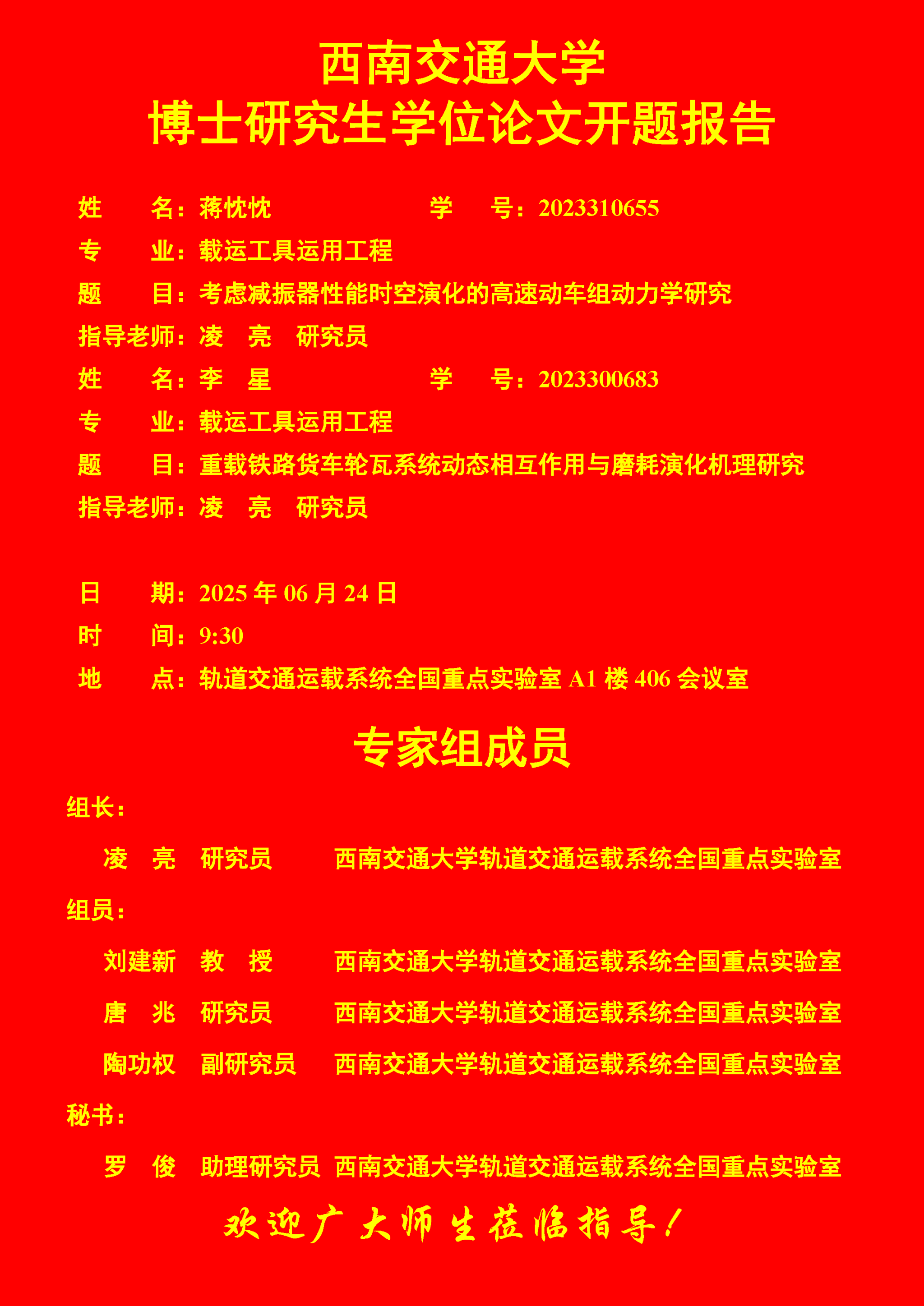 西南交通大学蒋忱忱、李 星博士学位论文开题