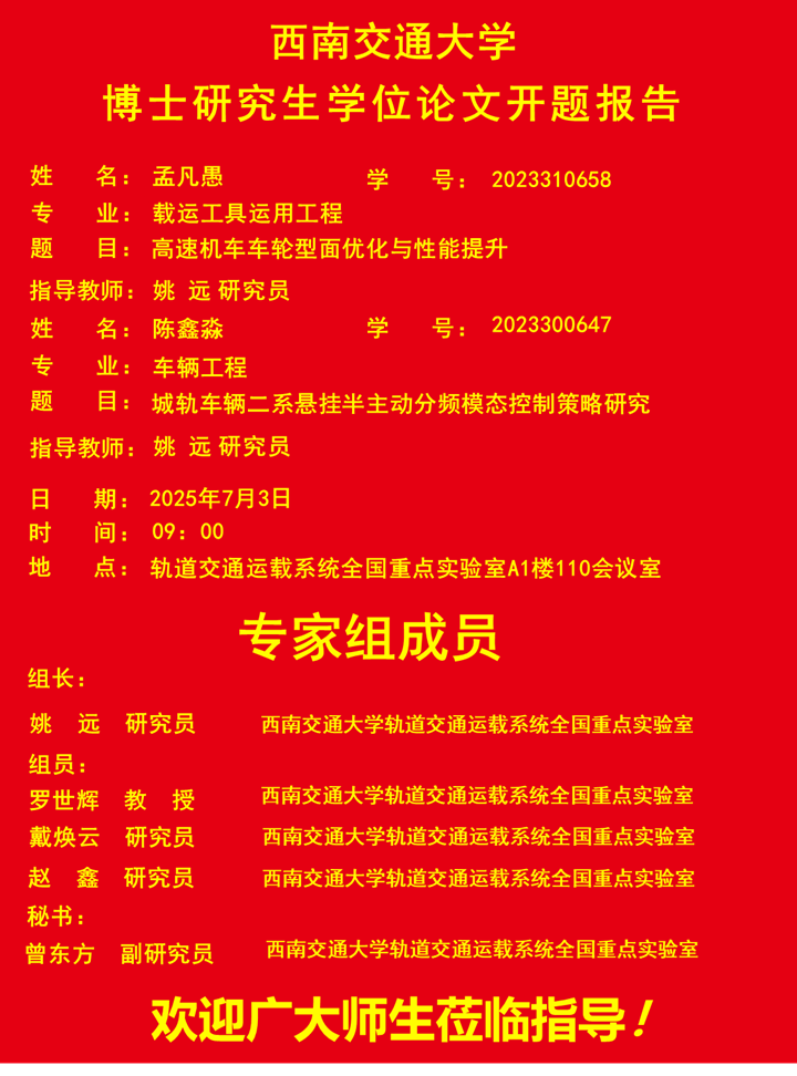 西南交通大学孟凡愚、陈鑫淼博士学位论文开题