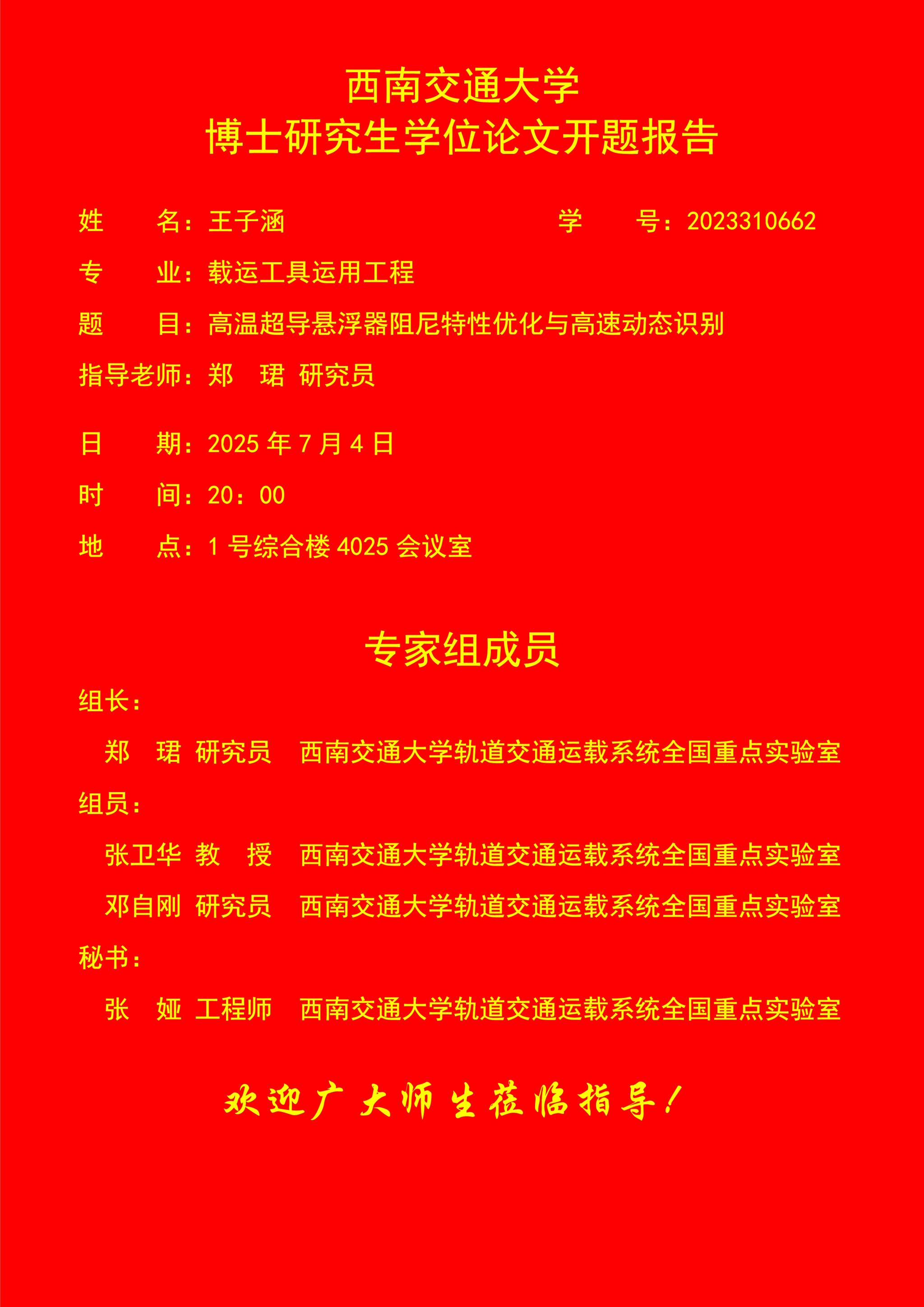 西南交通大学子涵博士学位论文开题