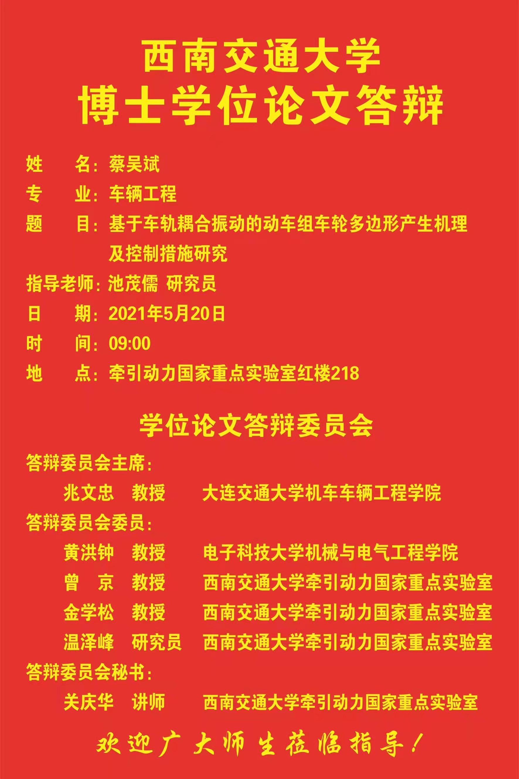 来源: 发布者:牵引动力研究生教育办公室 日期:2021/05/18 11:41:20 点击数: