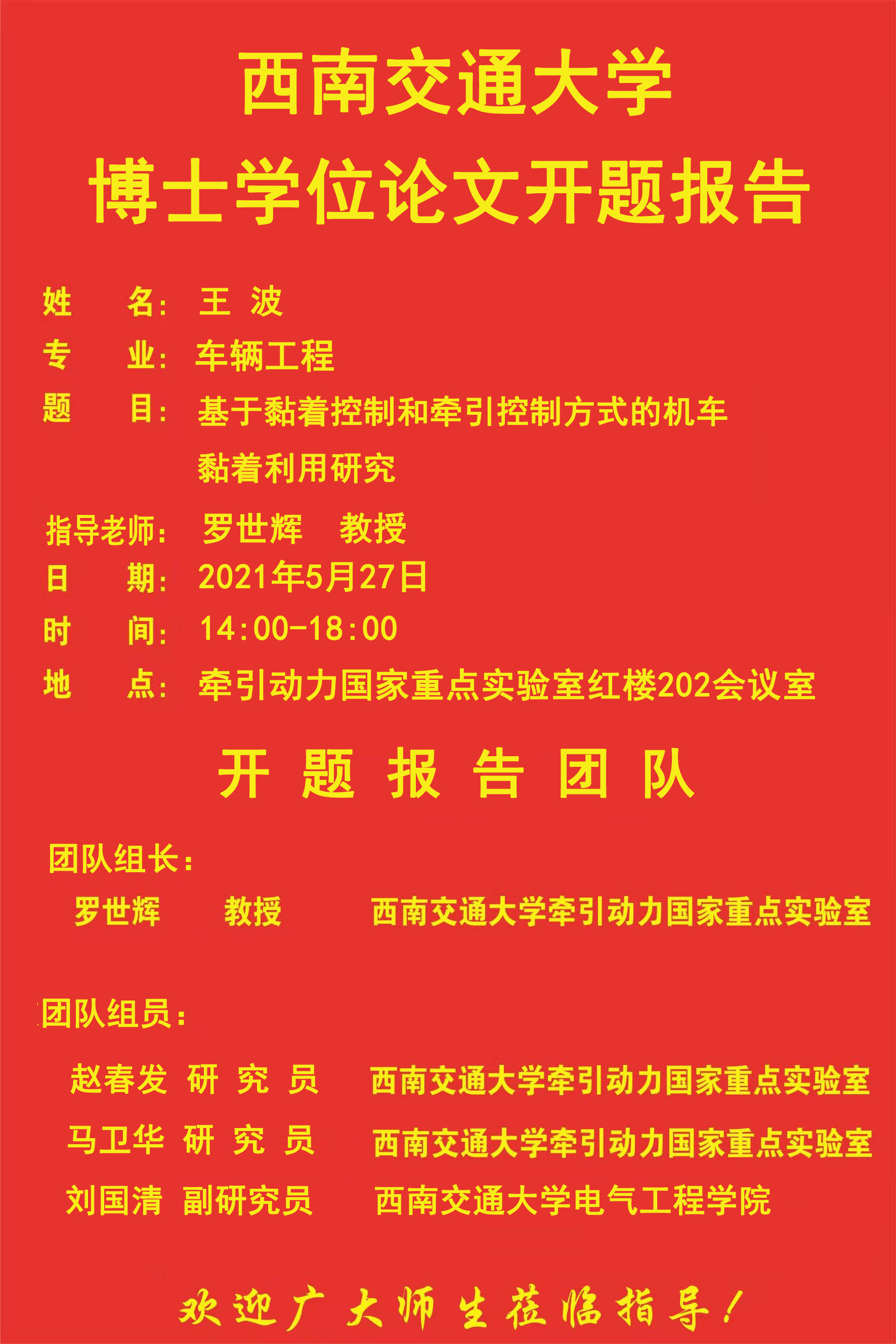 西南交通大学王波博士学位论文开题报告