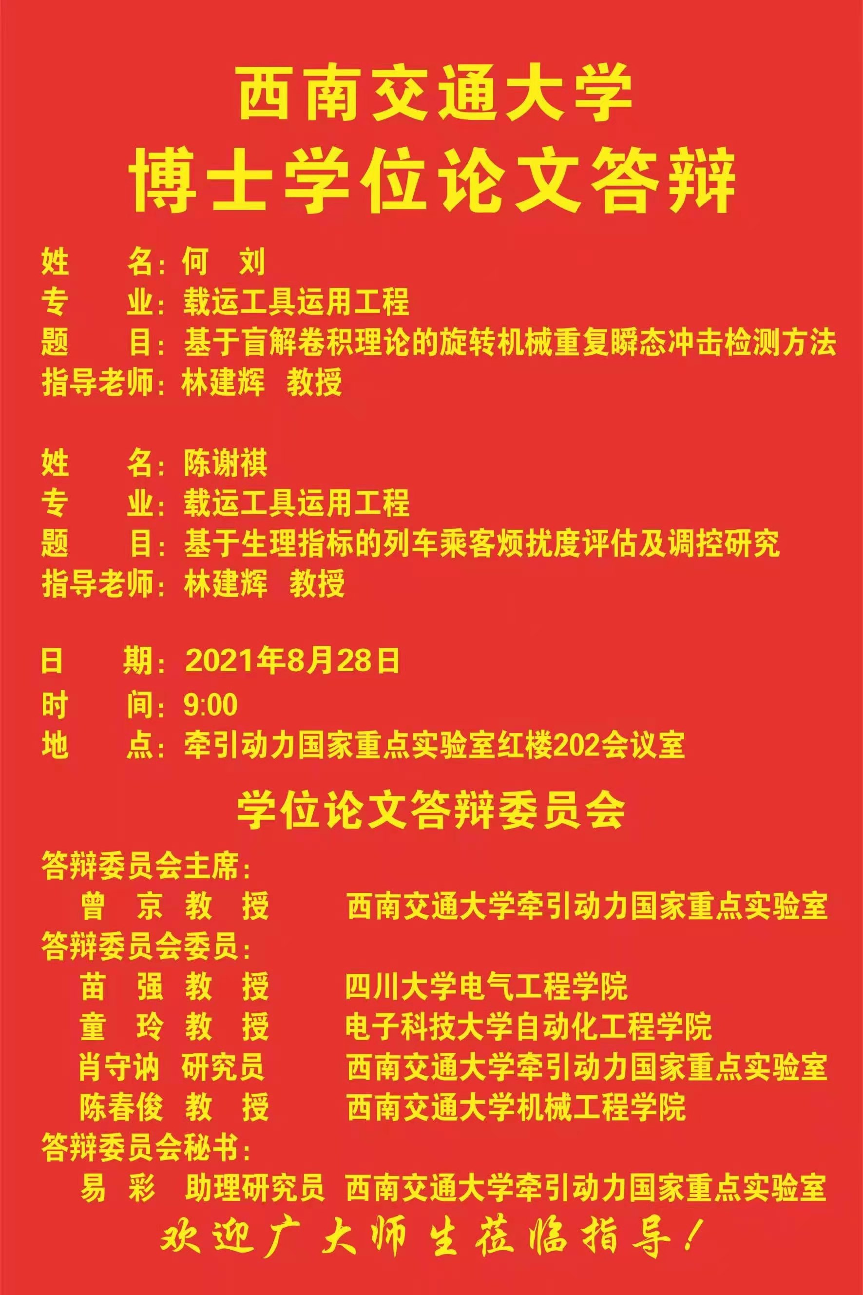 西南交通大学何刘、陈谢祺博士论文学位答辩