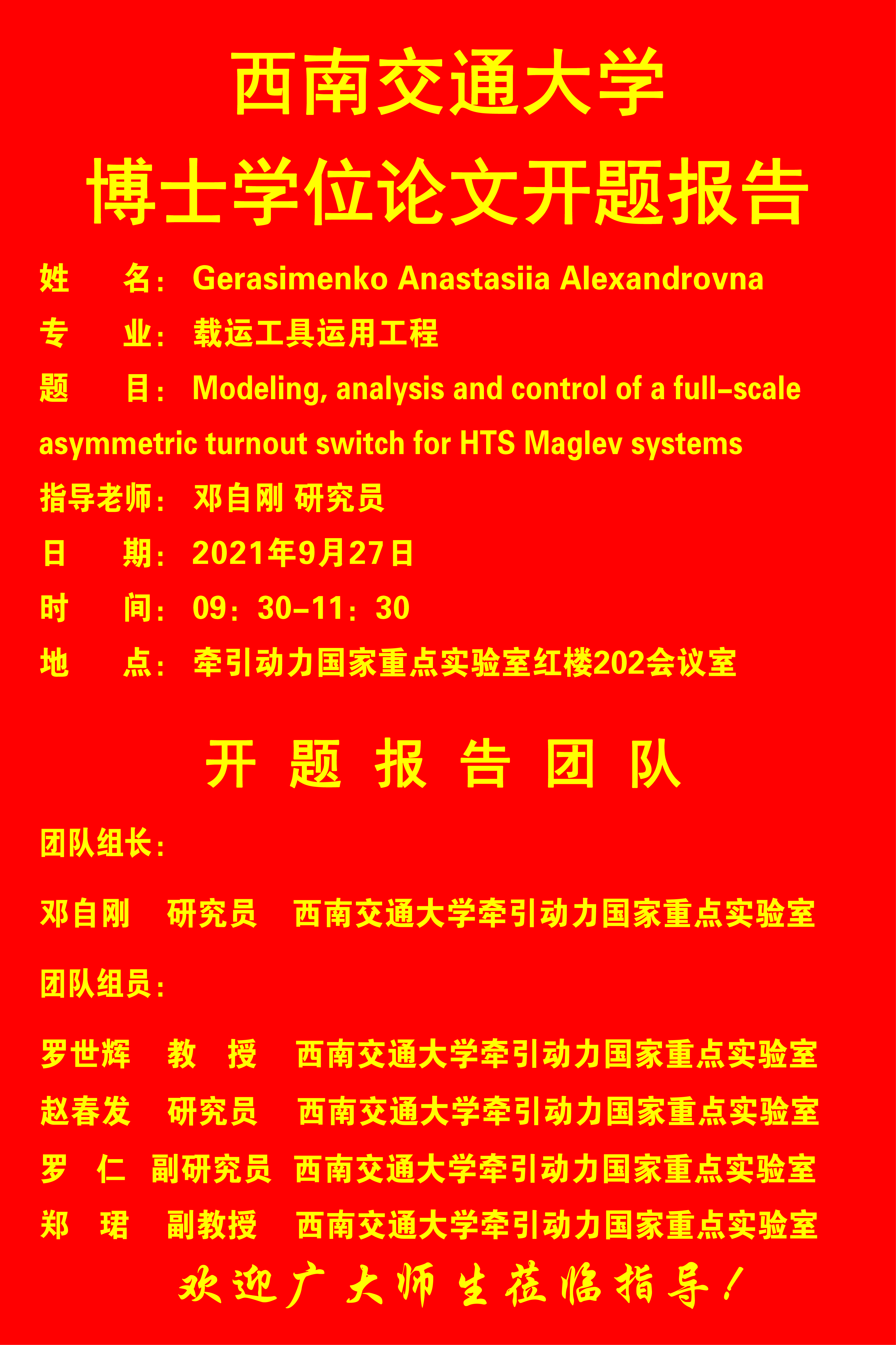 西南交通大学Gerasimenko Anastasiia Aleandrovna 博士学位论文开题报告
