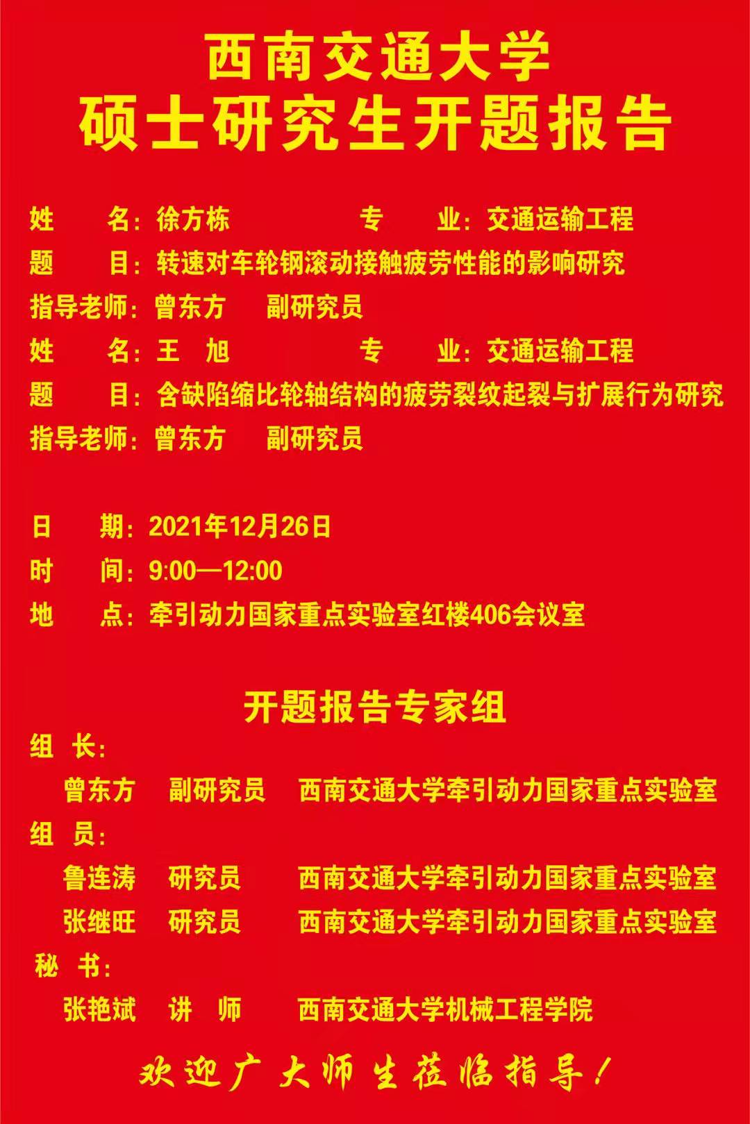 西南交通大学徐方栋、王旭硕士研究生开题报告
