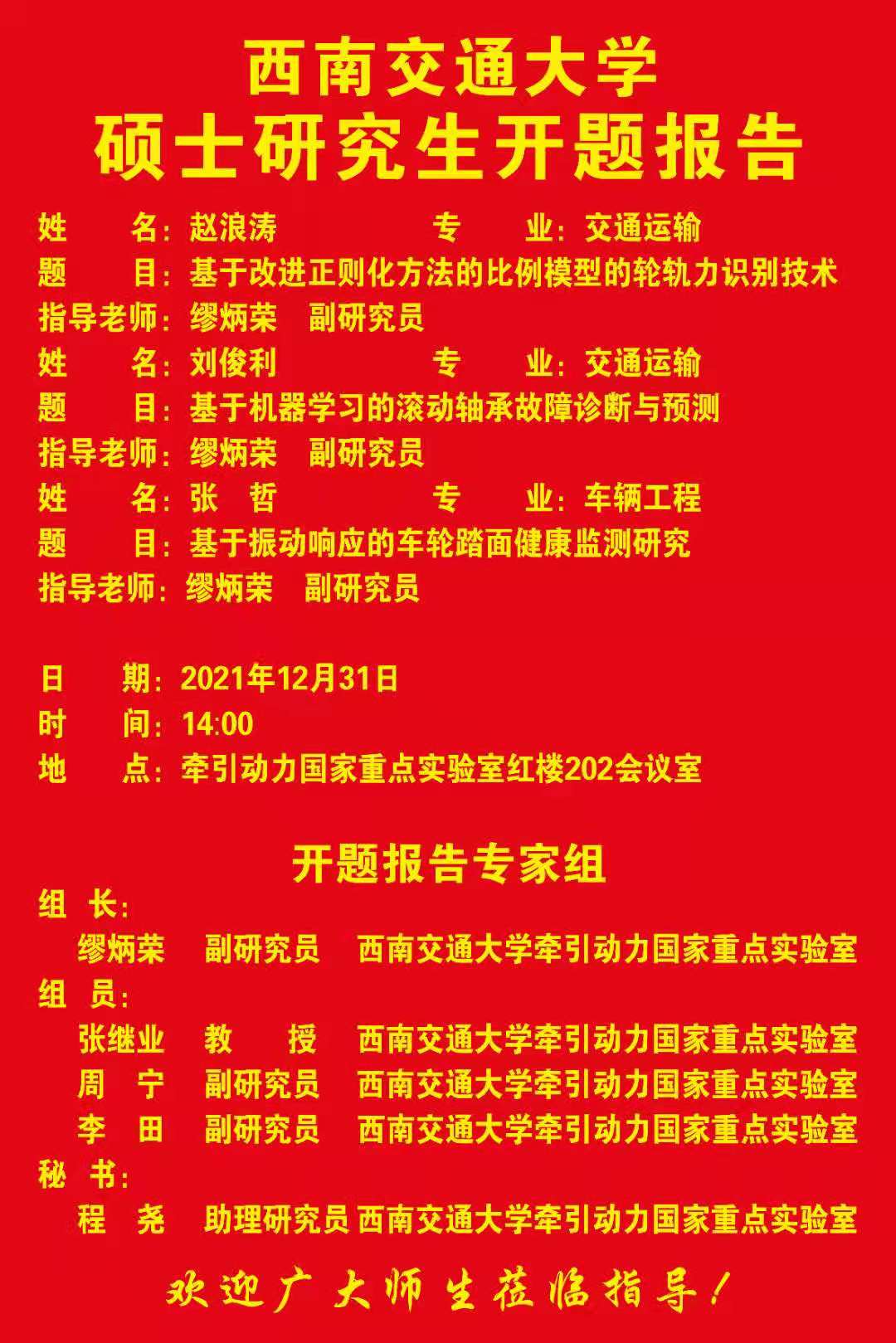 西南交通大学赵浪涛、刘俊利、张哲硕士研究生开题报告