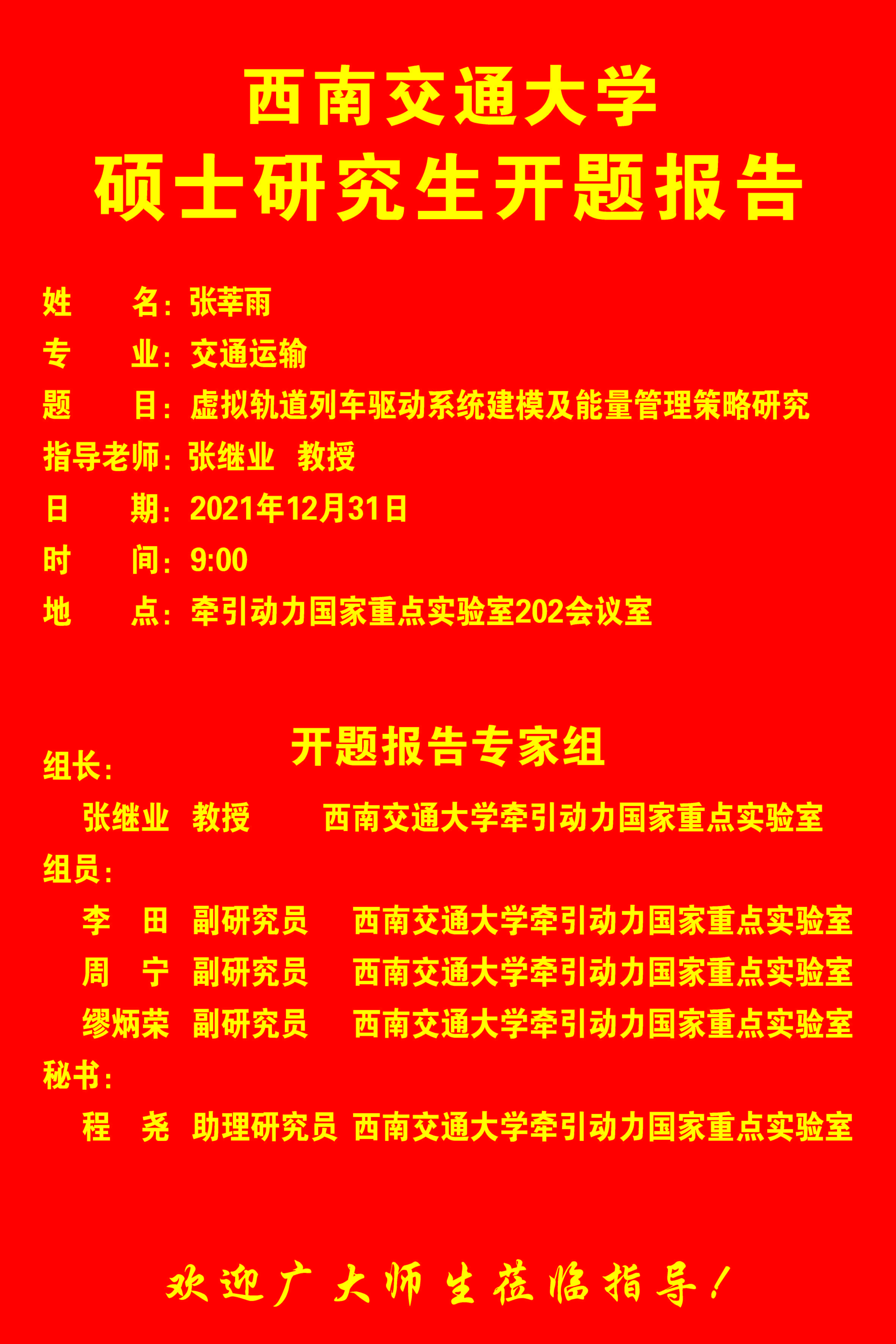 西南交通大学张莘雨硕士研究生开题报告