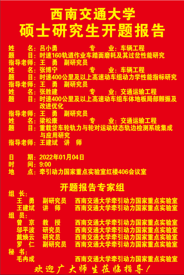 西南交通大学吕小勇、张胜建、张博宁、梁松康硕士研究生开题报告