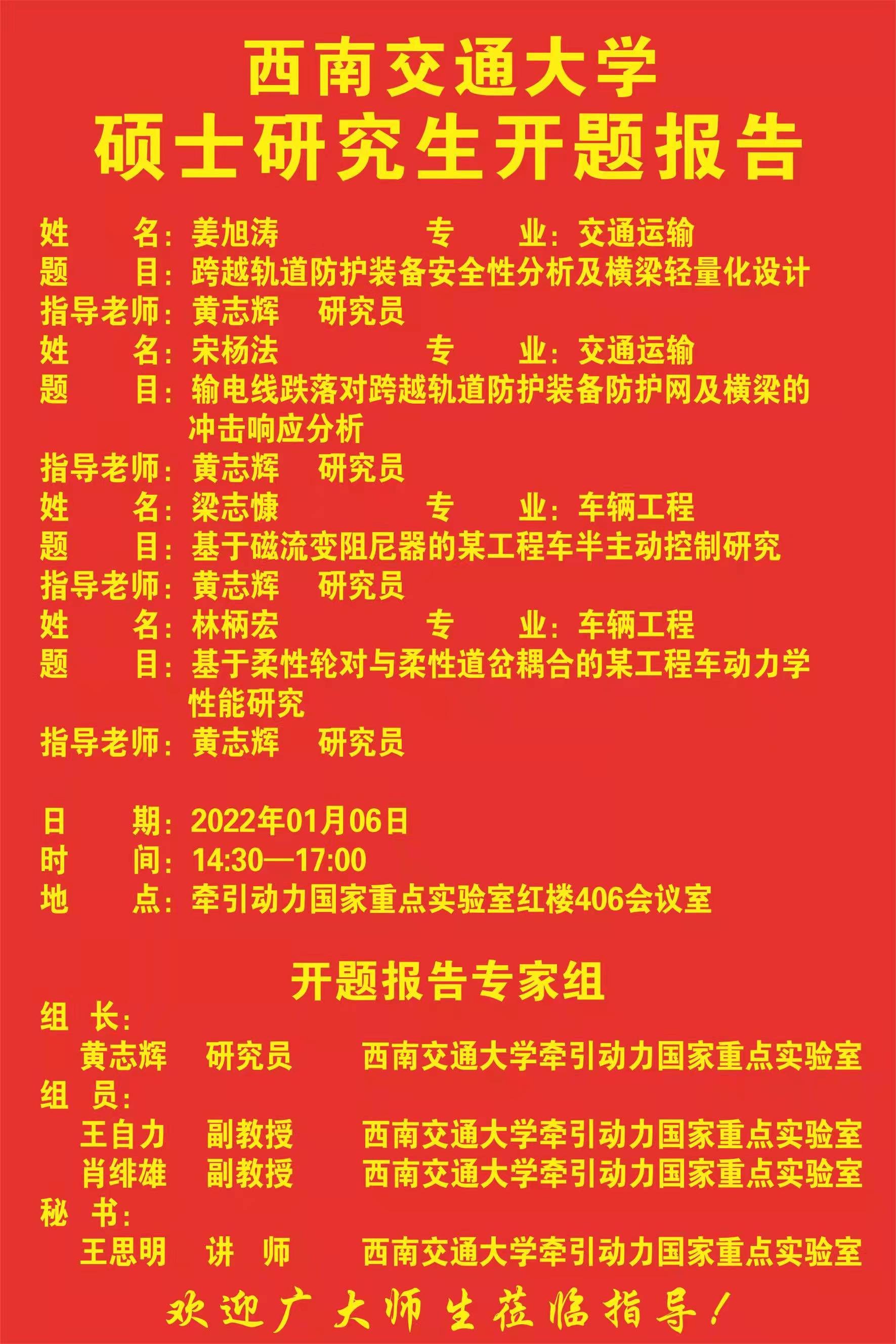 西南交通大学姜旭涛、宋杨法、梁志慷、林柄宏硕士研究生开题报告
