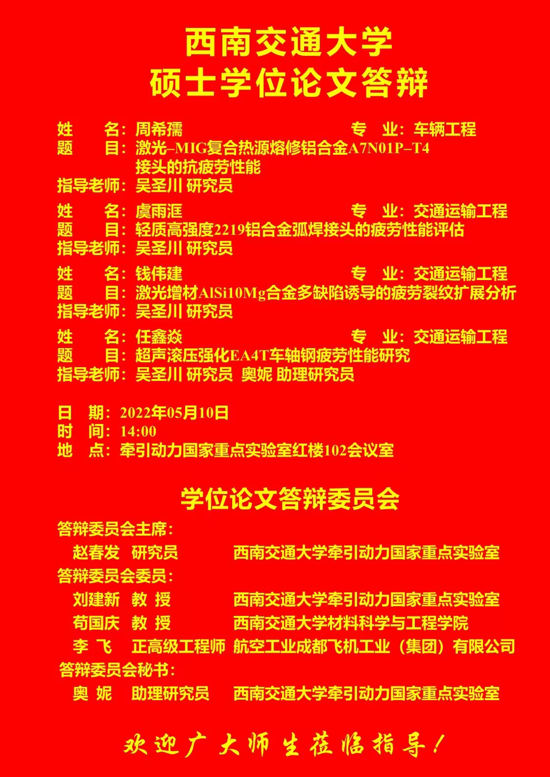 西南交通大学周希孺、虞雨洭、钱伟建、任鑫炎硕士学位论文答辩