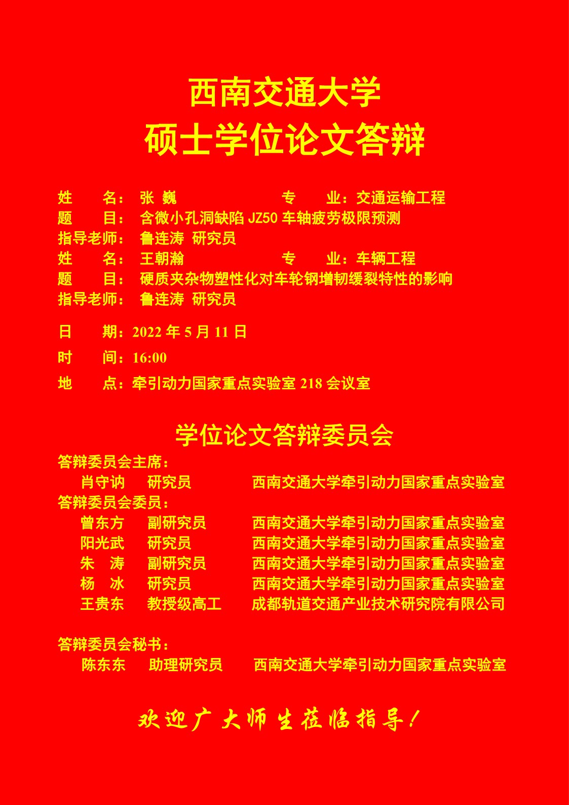 西南交通大学张巍、王朝瀚硕士学位论文答辩