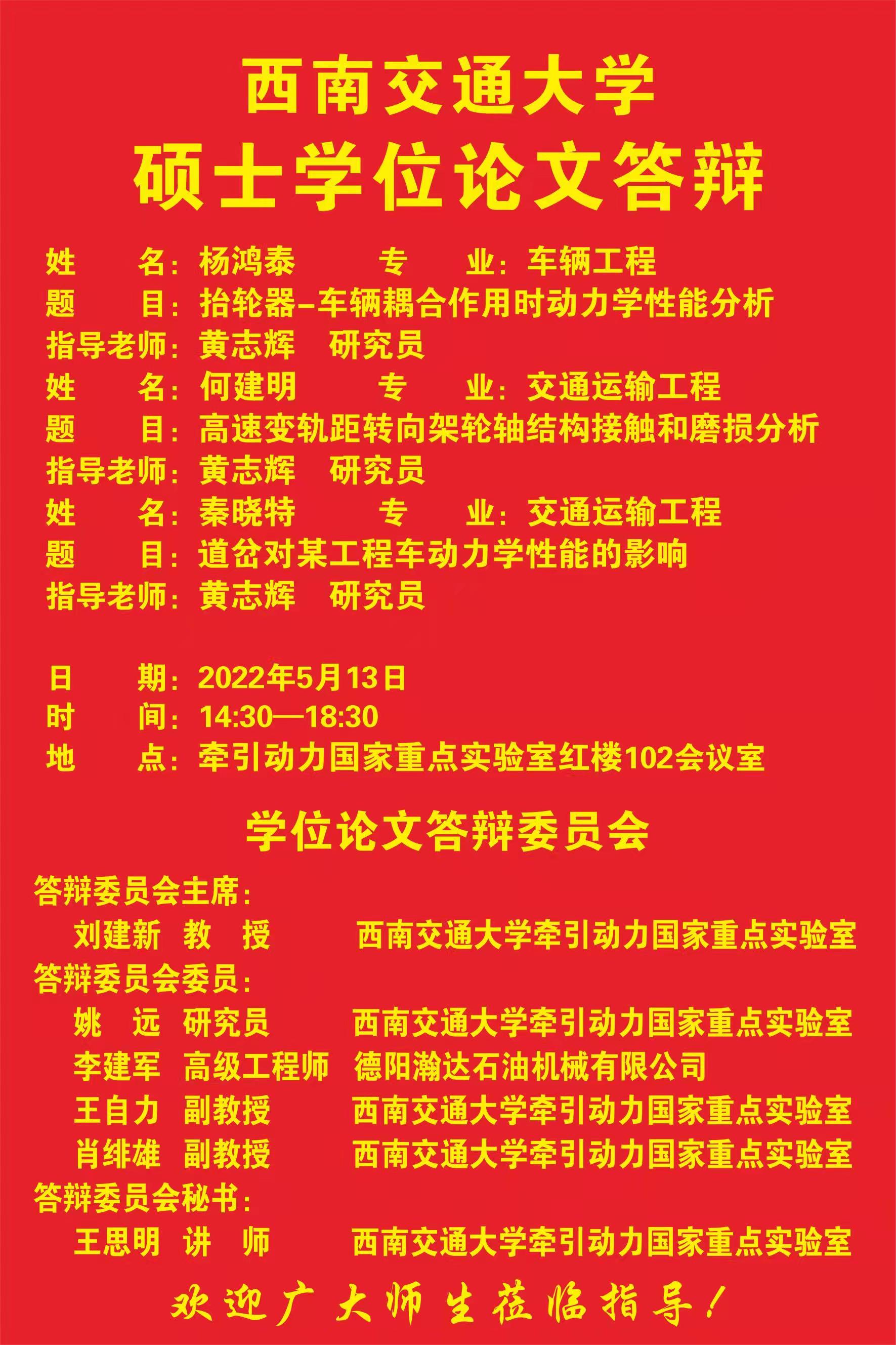 西南交通大学杨鸿泰、何建明、秦晓特硕士学位论文答辩