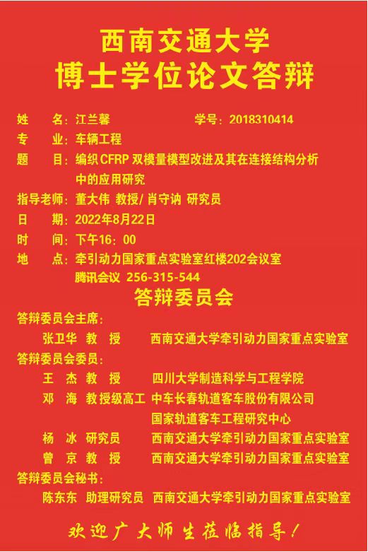 西南交通大学江兰馨博士学位论文答辩