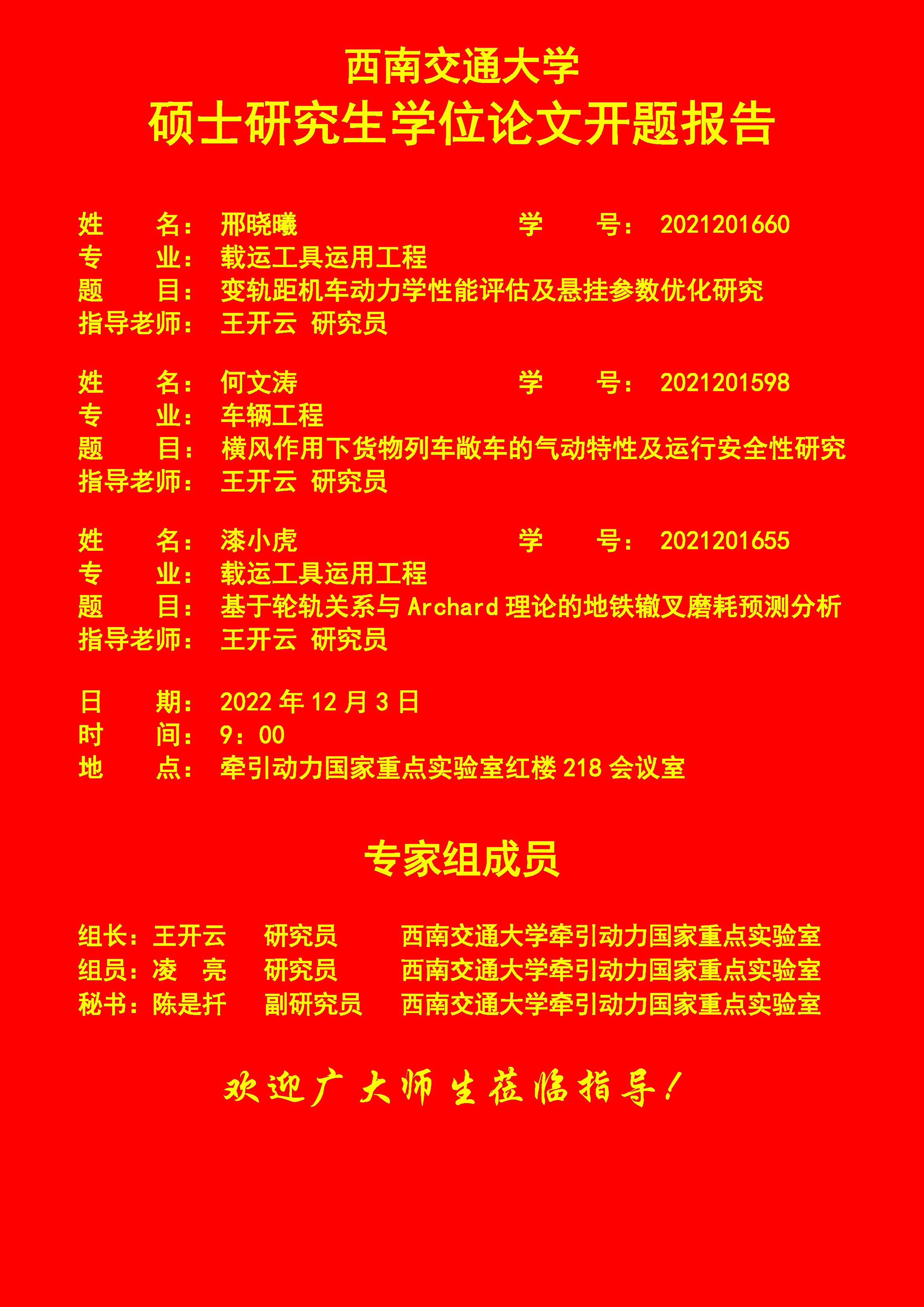 西南交通大学邢晓曦、何文涛、漆小虎硕士研究生学位论文开题报告