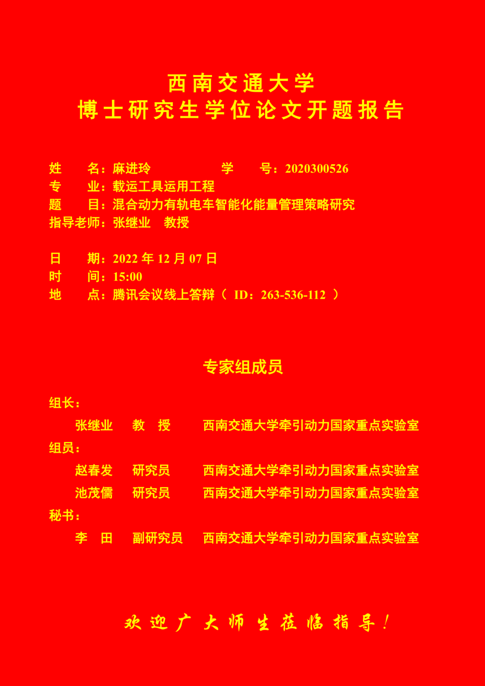 西南交通大学麻进玲博士研究生学位论文开题报告