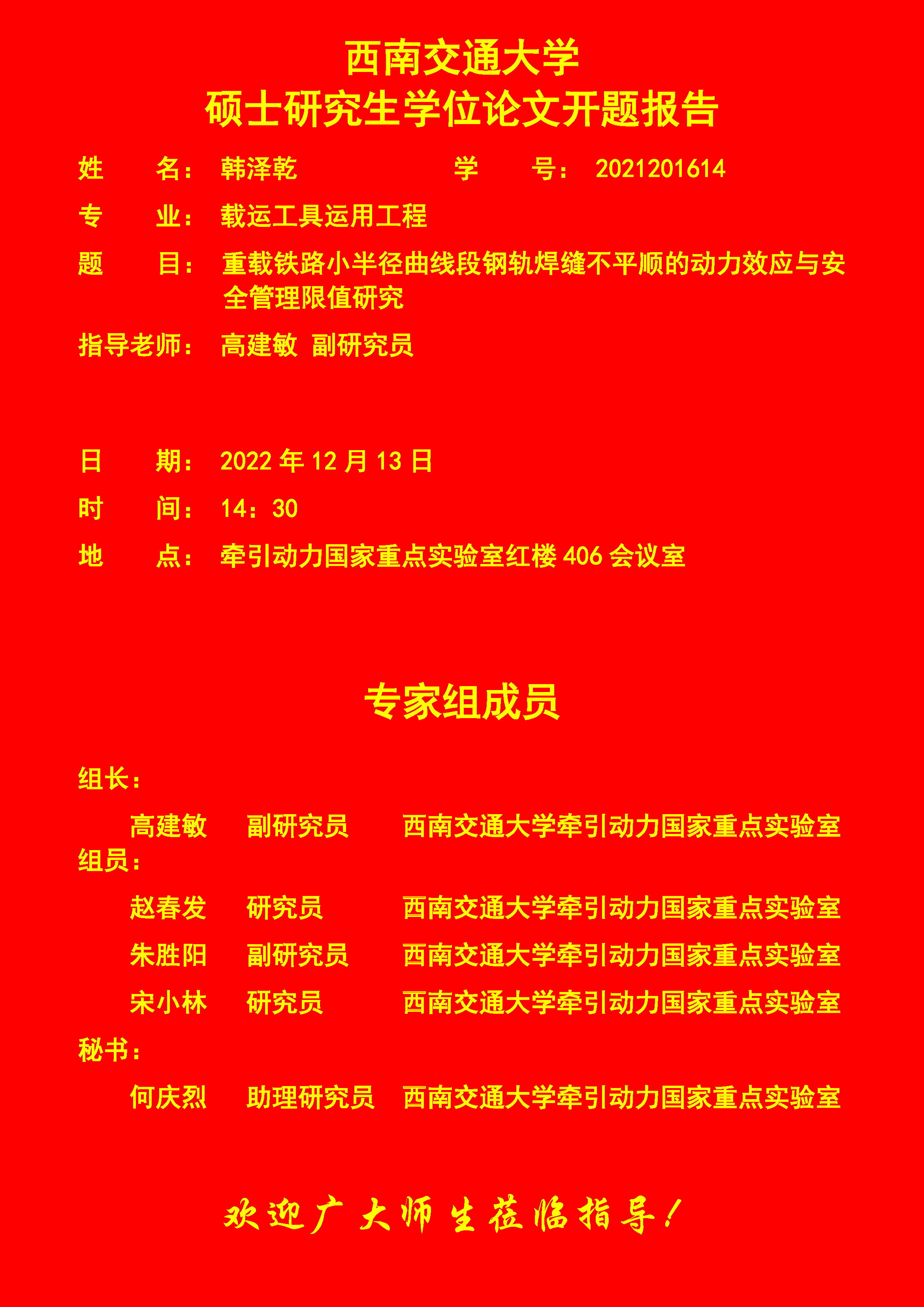 西南交通大学韩泽乾硕士研究生开题报告