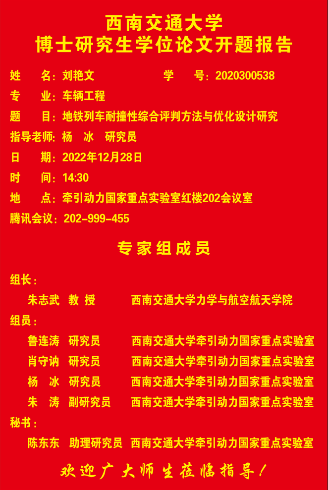 西南交通大学刘艳文博士研究生学位论文开题报告