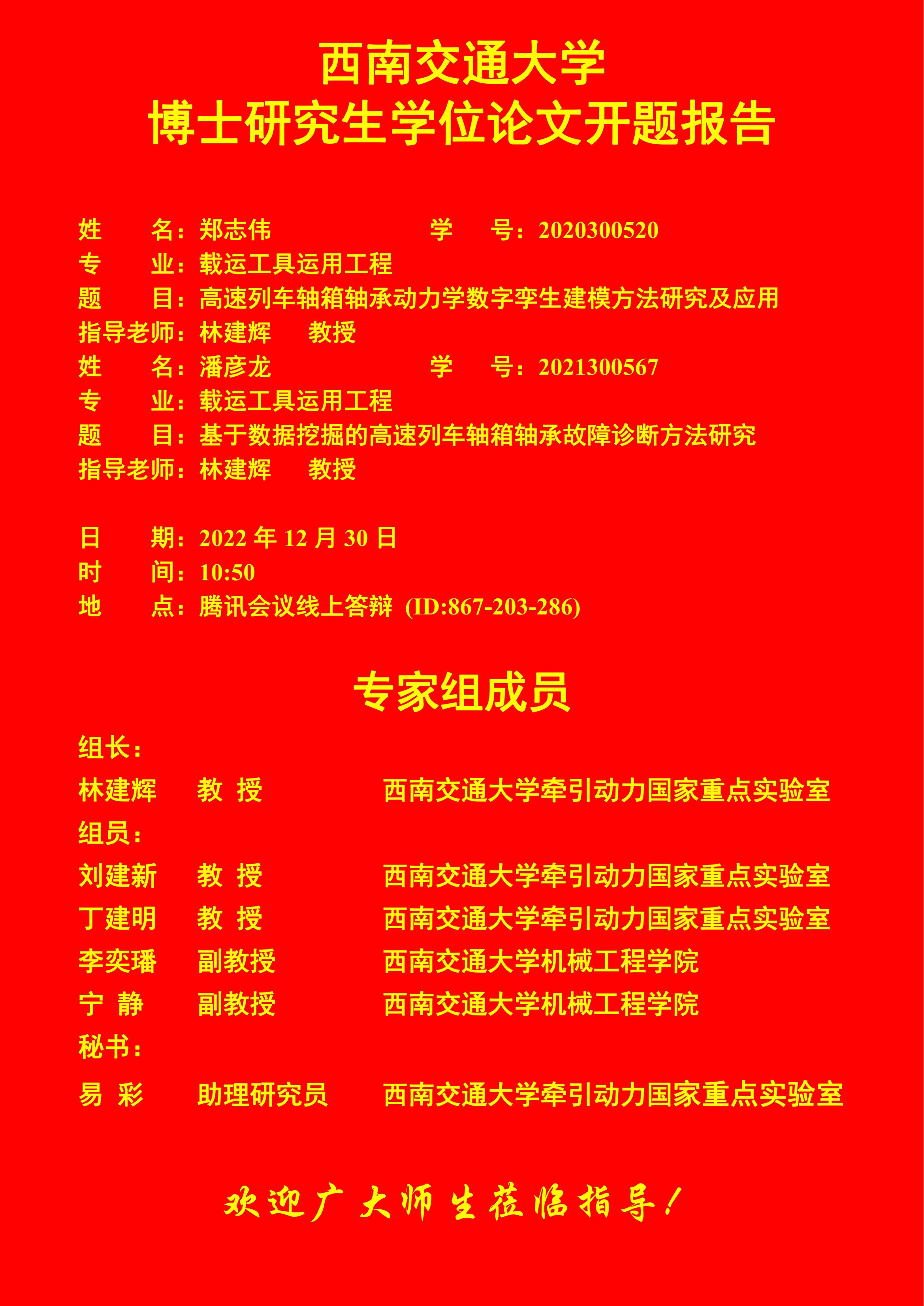 西南交通大学郑志伟、潘彦龙博士研究生学位论文开题报告
