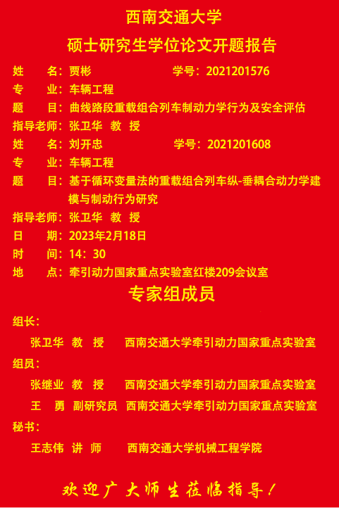 西南交通大学贾彬、刘开忠硕士研究生学位论文开题报告