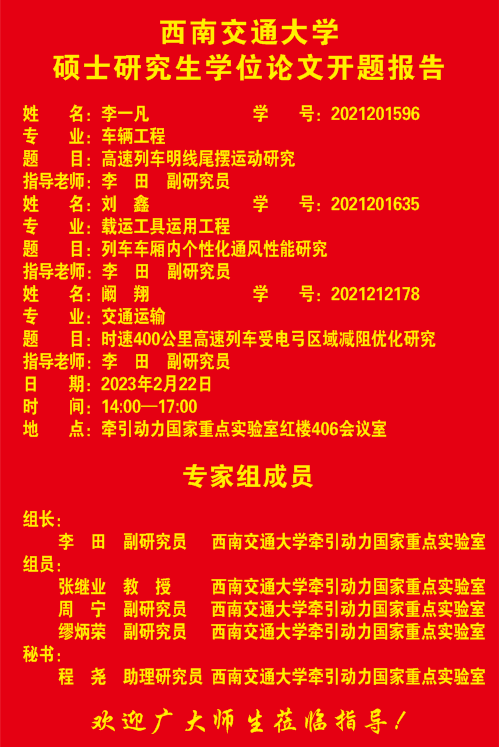 西南交通大学李一凡、刘鑫、阚翔硕士研究生开题报告