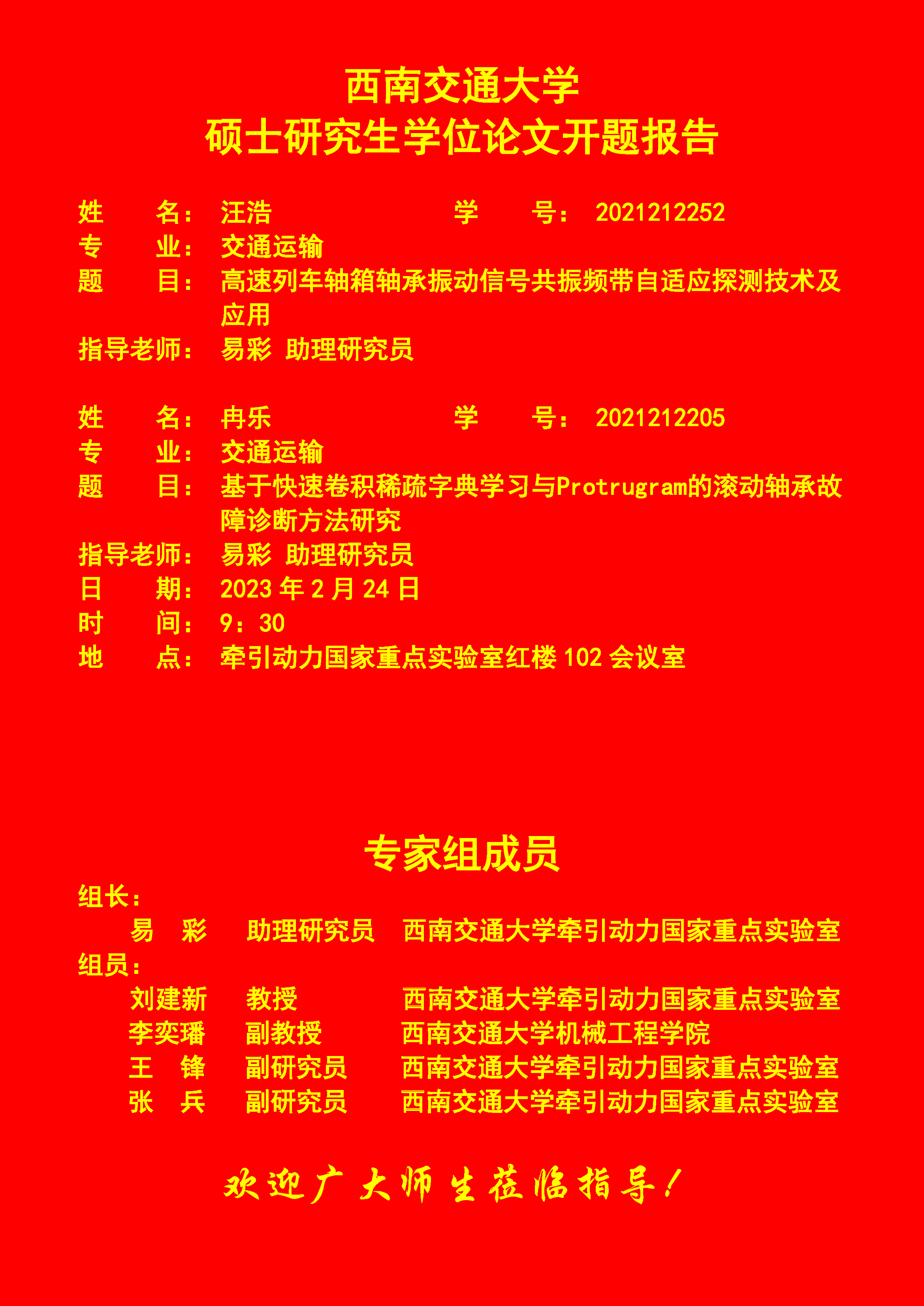 西南交通大学汪浩、冉乐硕士研究生开题报告