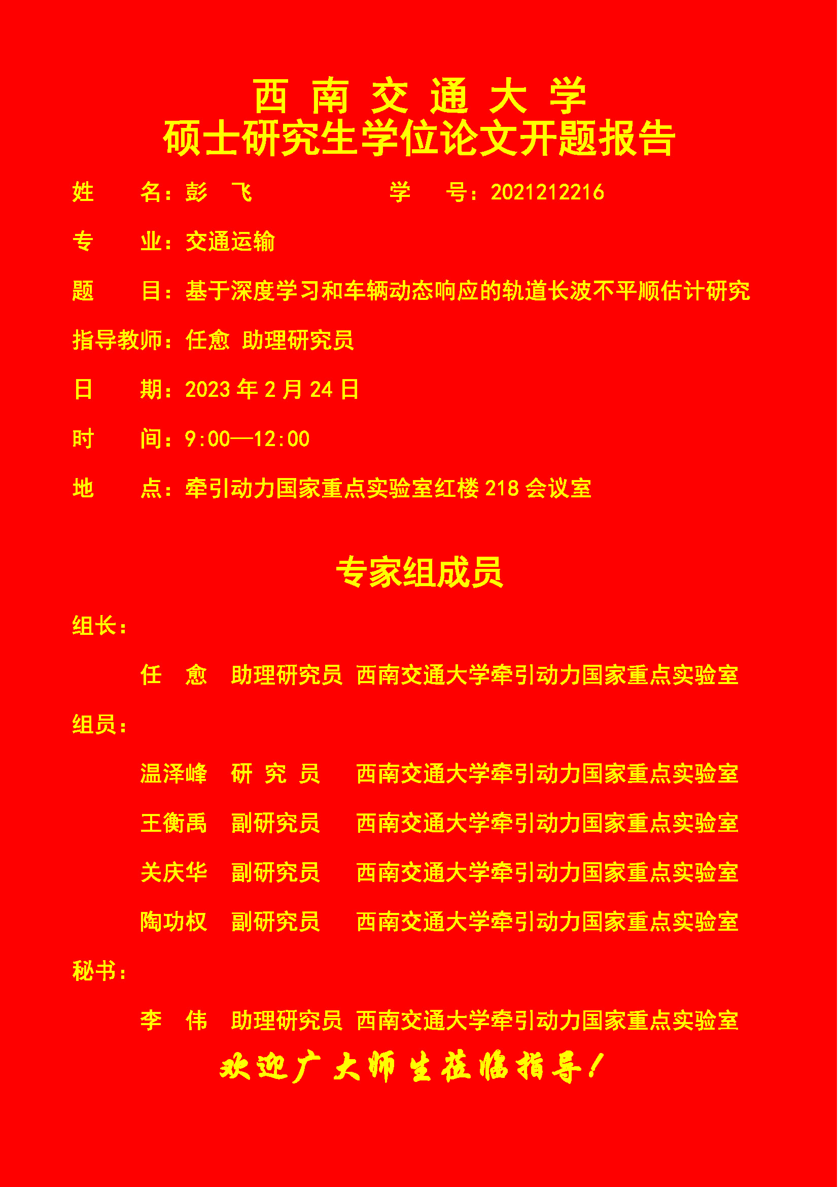 西南交通大学彭飞硕士研究生学位论文开题报告